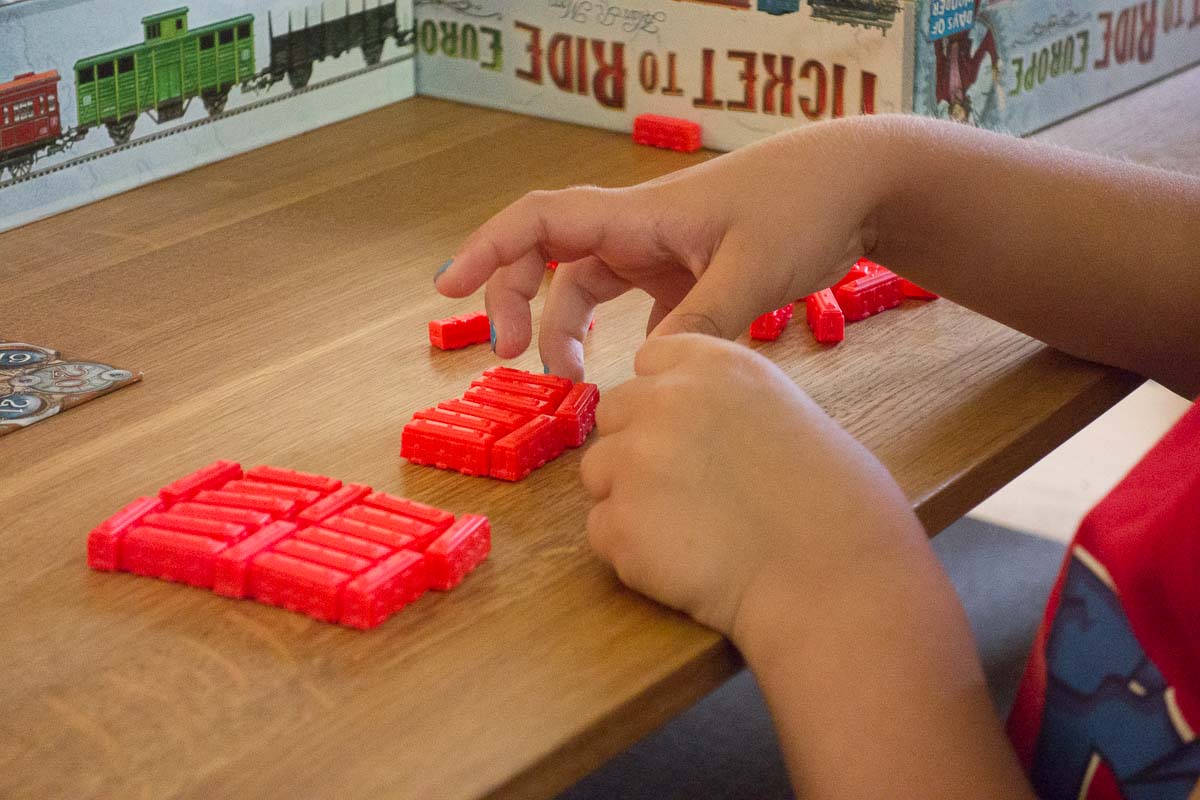 Adrian wants to “be on someone’s team” when we play because the game is too hard for him. But mostly he plays with the game pieces and builds stuff out of them.