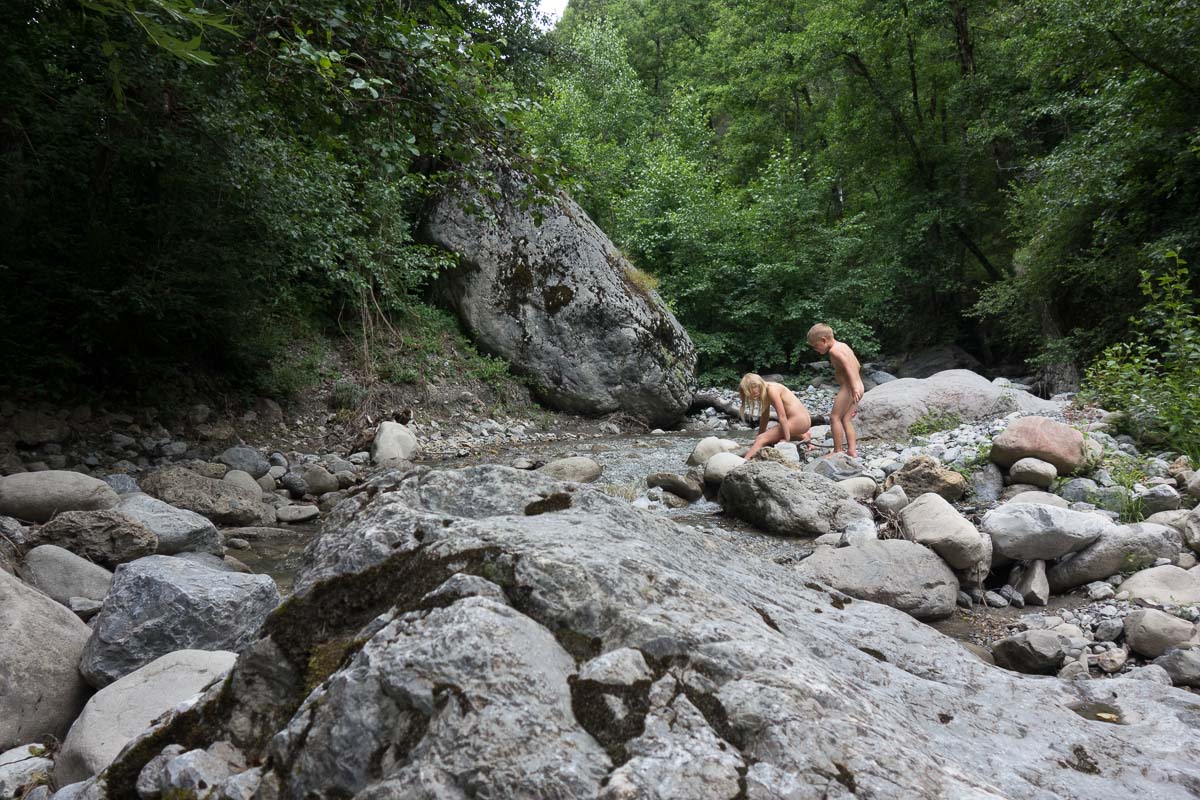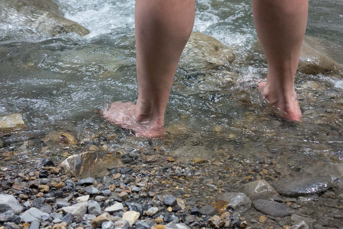 The highlight of today’s hike was our lunch break at a shallow stream. The water wasn’t cold at all so the kids spent a long time climbing and splashing around. Eric and I contented ourselves with cooling our feet.
