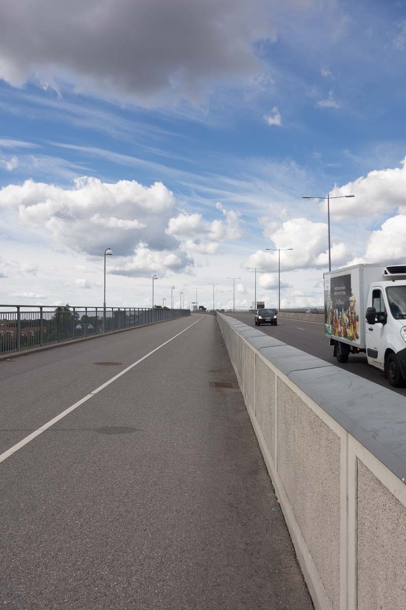 Most of the route is flat, easy cycling, except for this giant bridge and the motorway overpasses right to the east of it. The bridge looks so flat from a distance but it definitely does not feel flat when cycling over it – it’s a long slog of a climb. Especially when it’s windy.