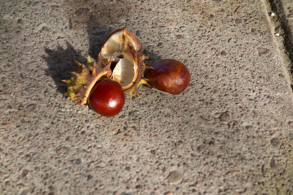 Chestnut trees are all yellow and brown and have already lost many leaves. The chestnuts themselves are dropping like bombs in the city, making it almost dangerous to pass underneath, while here in SpÄnga they are mostly still hanging on.