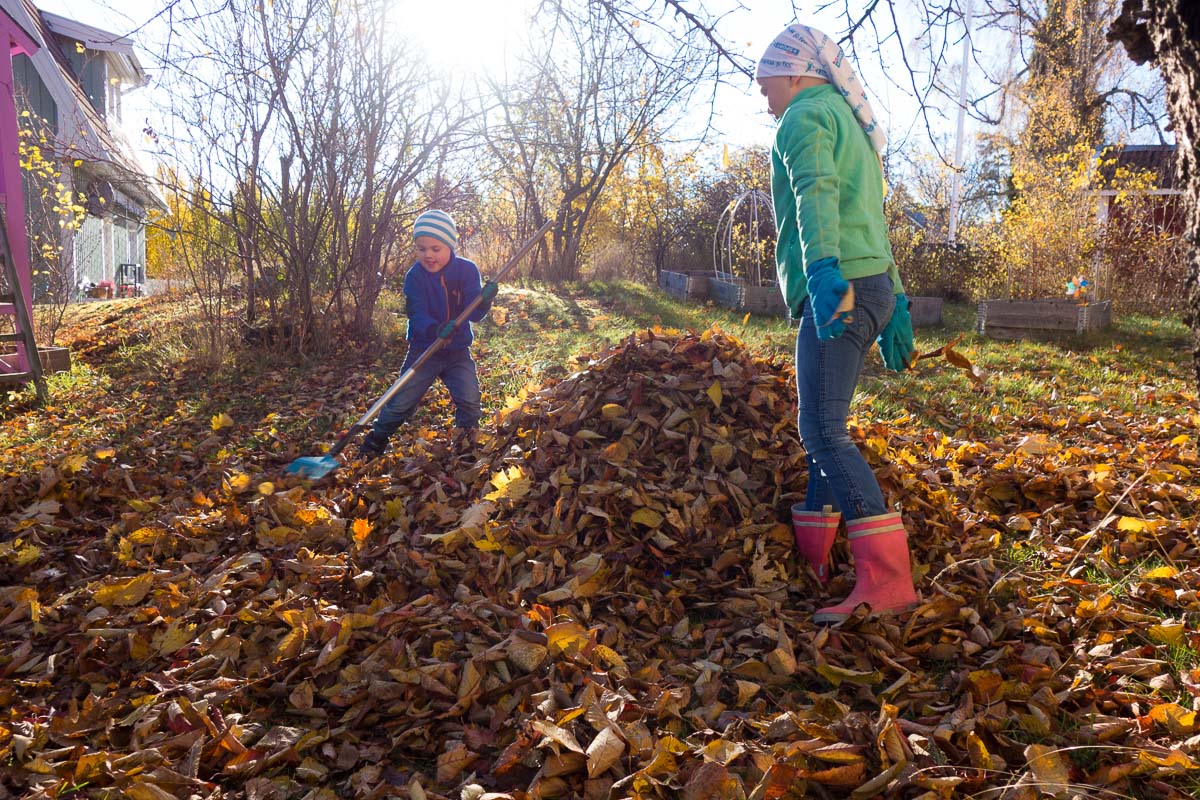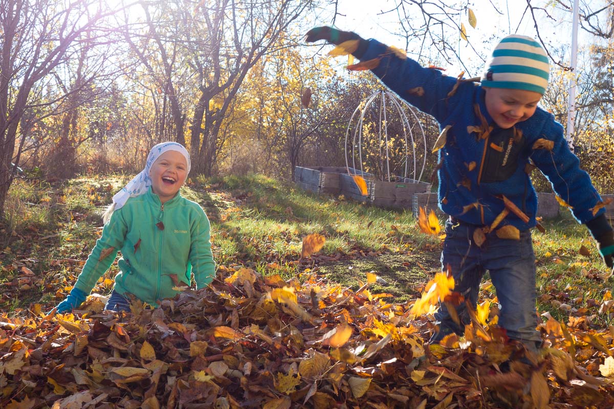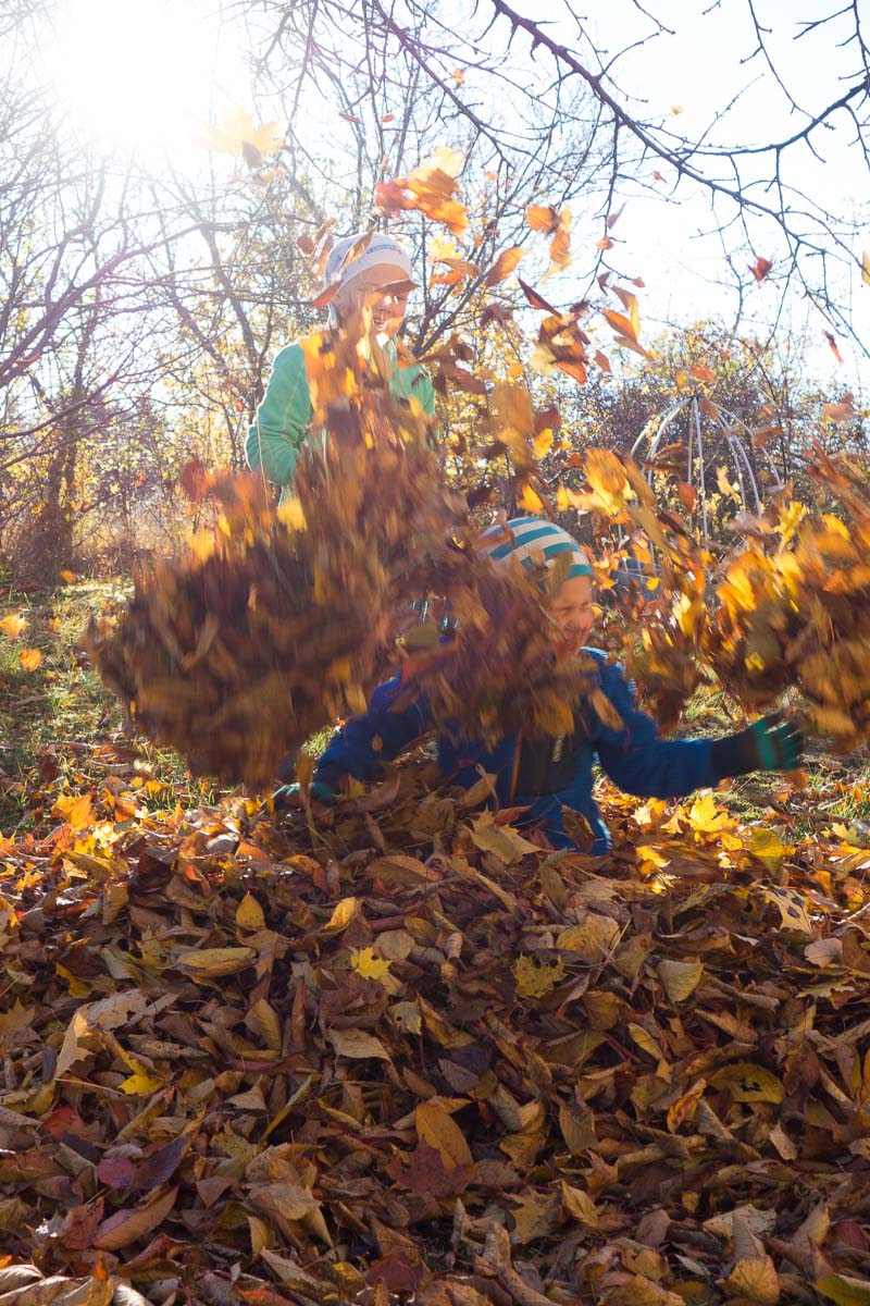 Today was an excellent day for raking leaves: sunny, warmish, dry, and almost no wind. And of course raking leaves also means throwing leaves, rolling around in leaves, jumping in leaves, burying each other in leaves, etc.