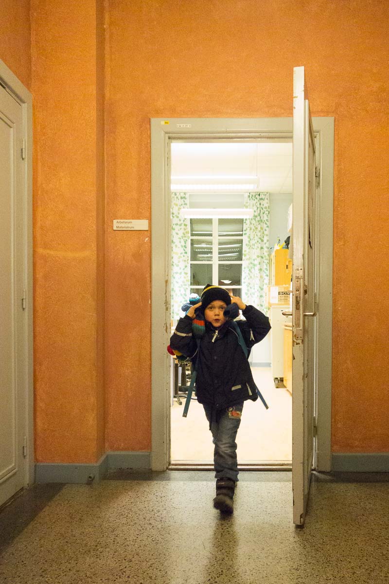 On Tuesdays the kids have “mother tongue” lessons, in Estonian, together with a third Estonian kid at their school, so I pick them up from the classroom rather than from after-school care.