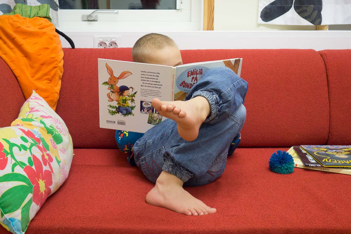 Normally I read for her at bedtime. Today for the first time ever Ingrid got so deep into a book in the evening that we missed our story time. She just couldn’t put the book down.
