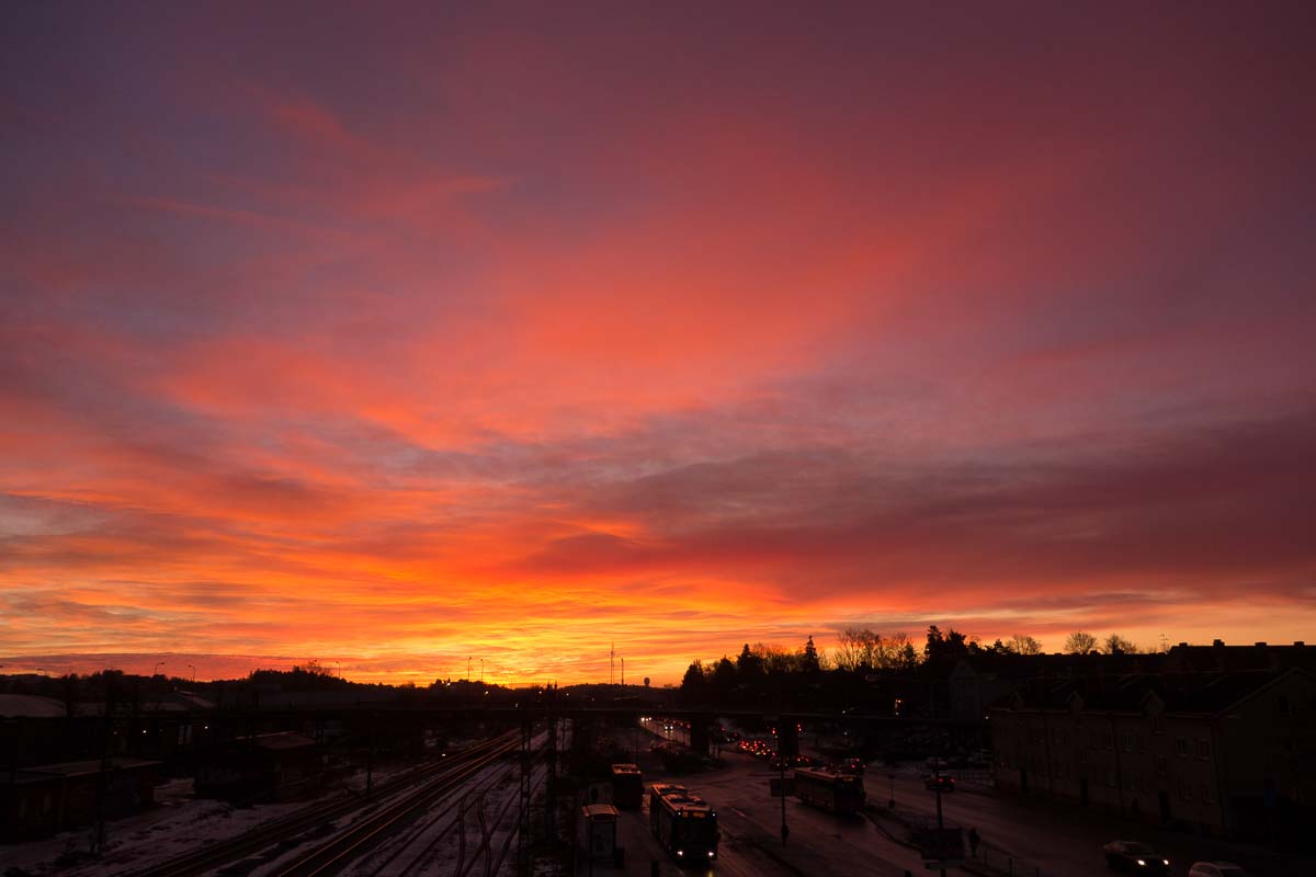 A pretty sunrise, but not the most spectacular one. The bare fact that I saw a sunrise during my commute at all is noteworthy, though, because it means that soon I will have daylight on my way to work instead.