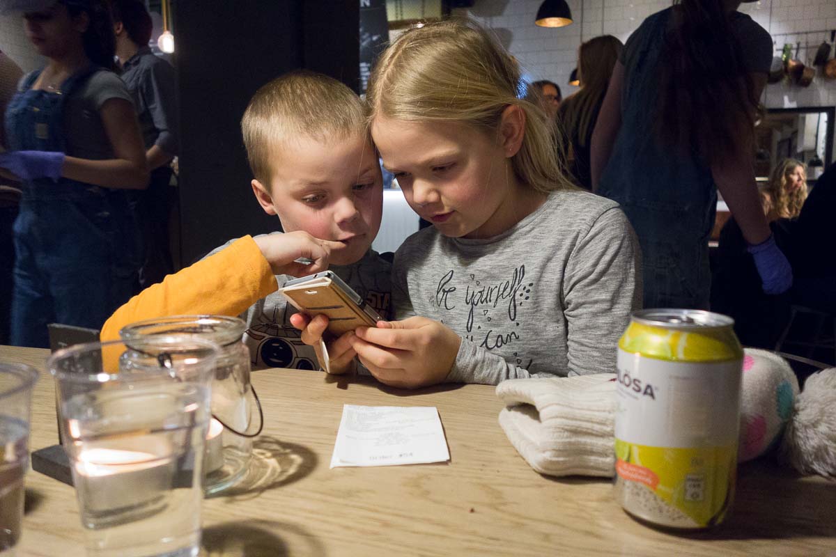 So we’ve been splitting up in various constellations throughout the day. The closest thing to skiing together as a family is when Adrian has ski school and the rest of us go down a nice green slope together.