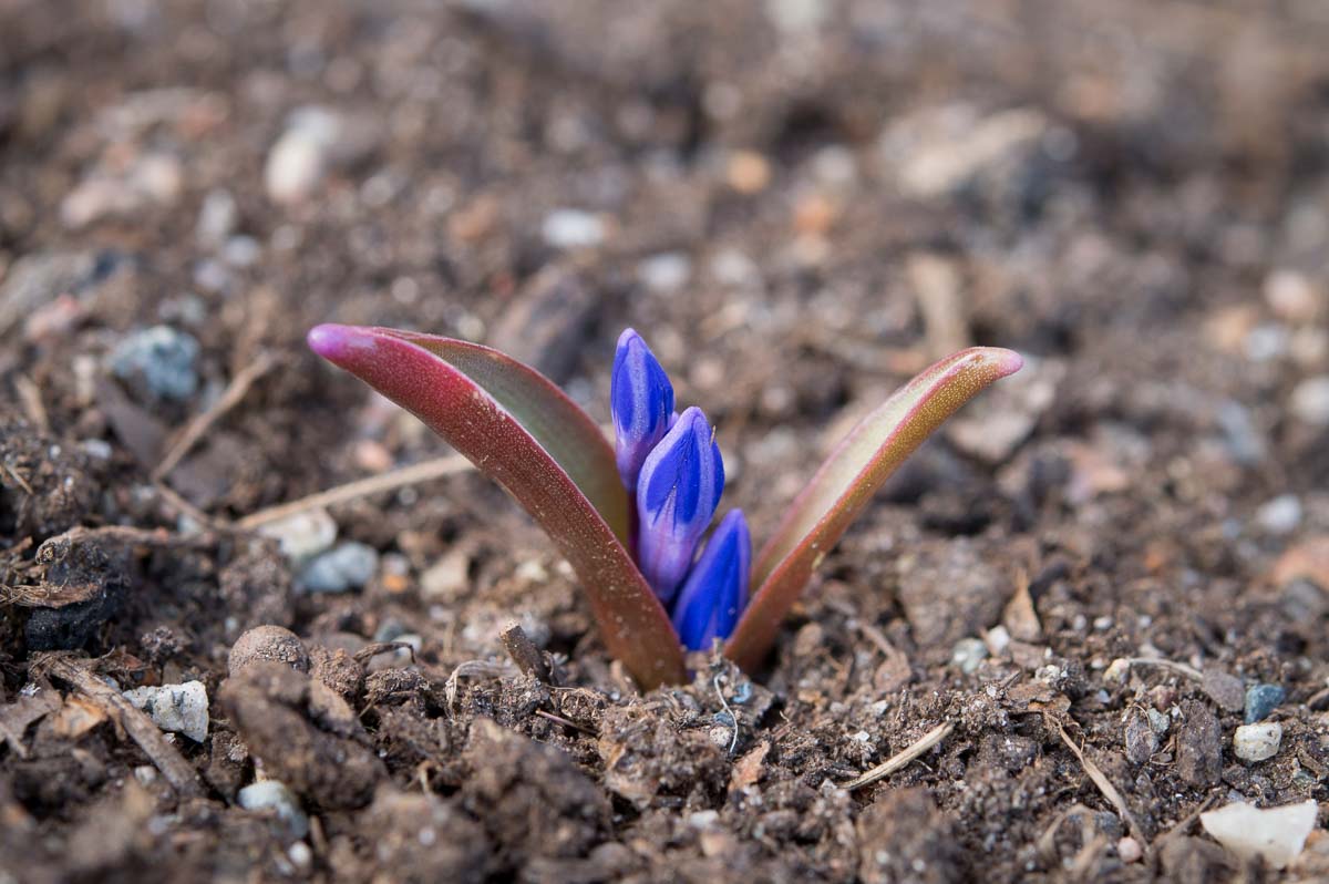 The first scillas are flowering on the south side of the house, and more are on the way.