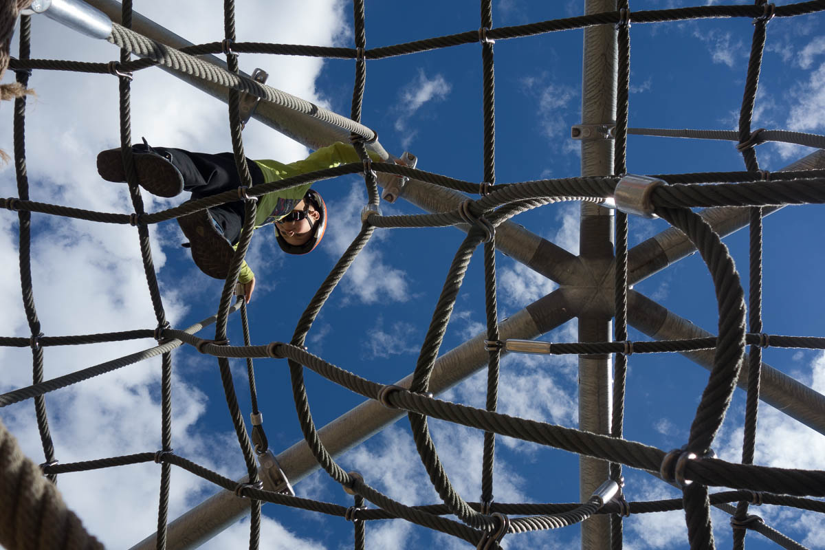 We were going to cycle straight home because Ingrid was on her own all day, probably bored to death, barely able to use her right hand… but we just couldn’t get past that climbing structure.