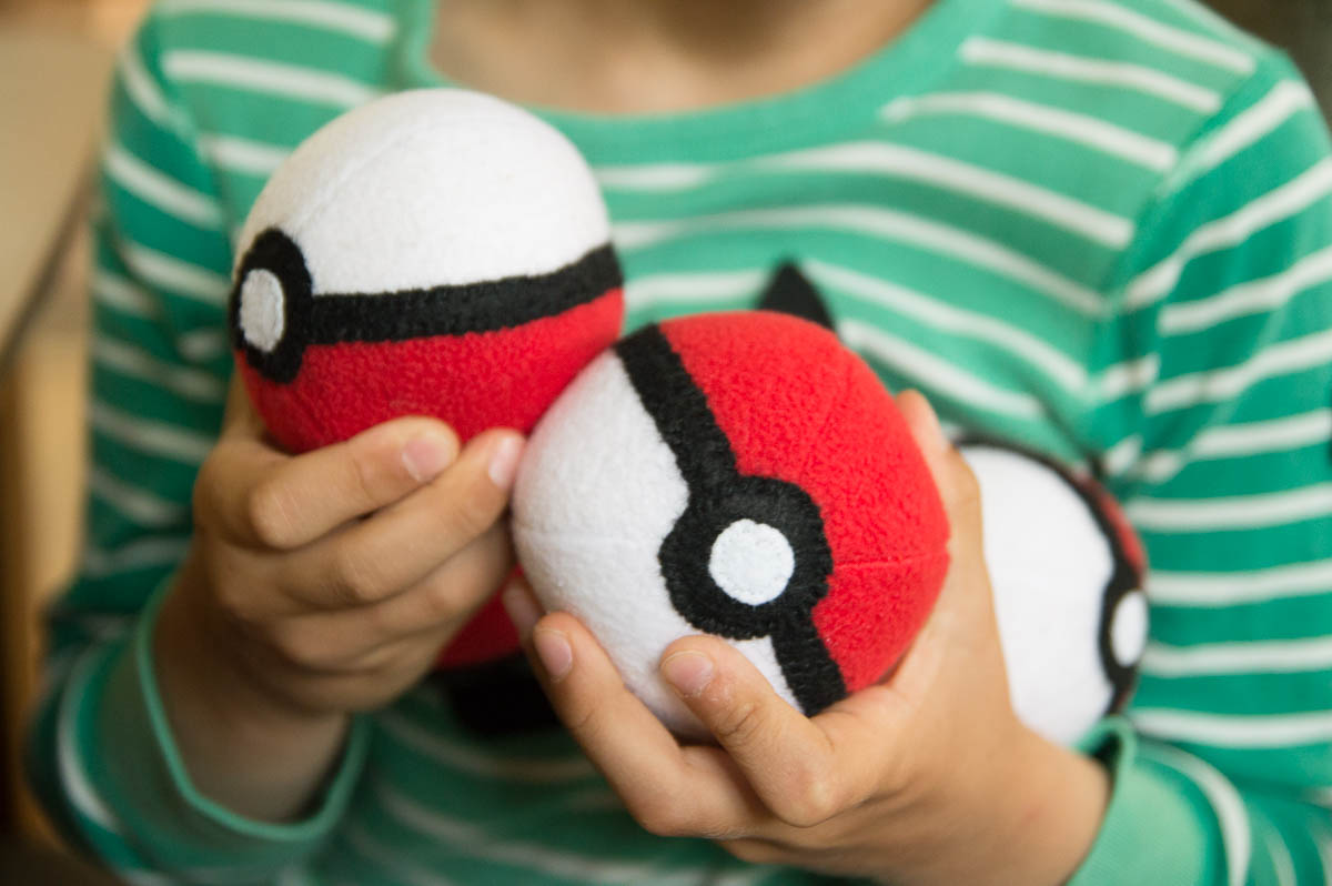I sewed Poke balls for Adrian, so he can throw them at imaginary Pokemons to catch them all.