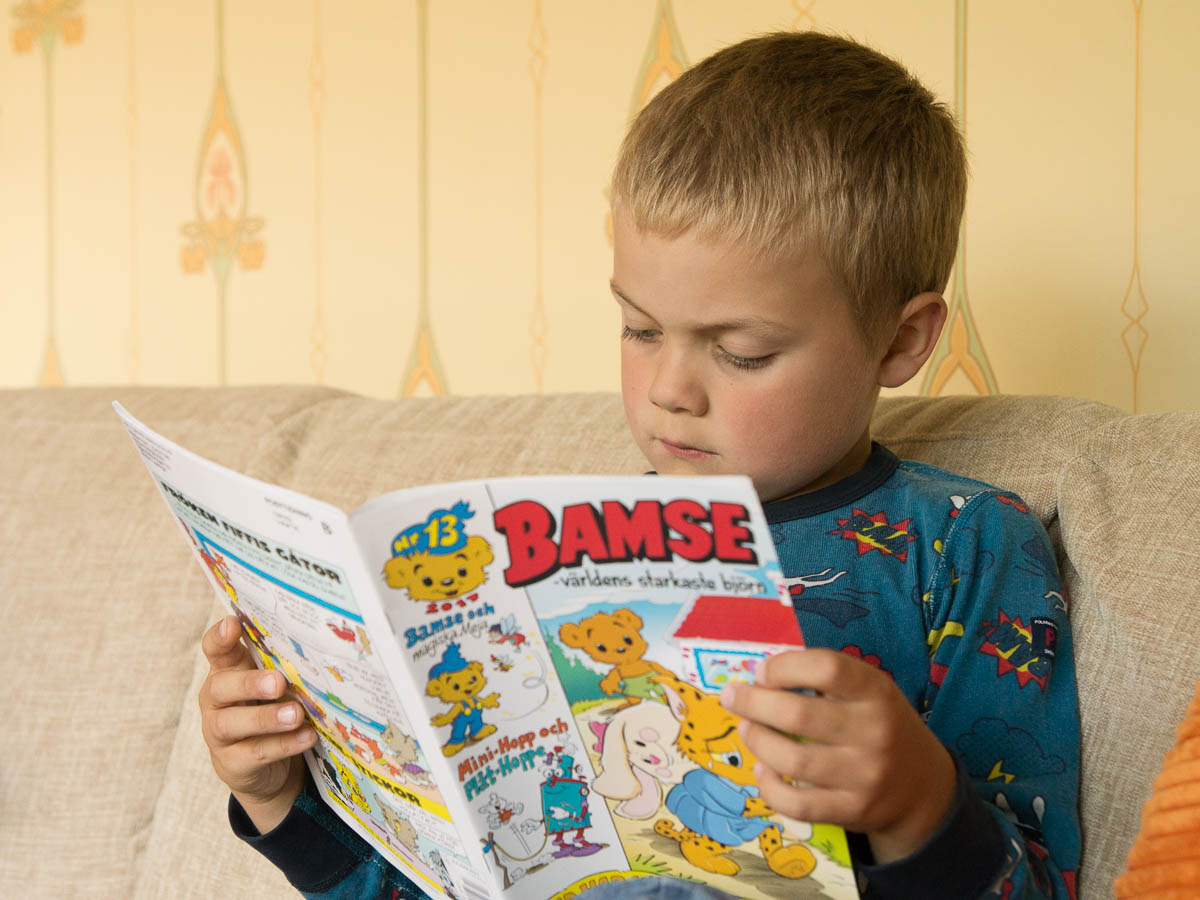 Adrian reading. Like Ingrid, he prefers comic books to “real” books.