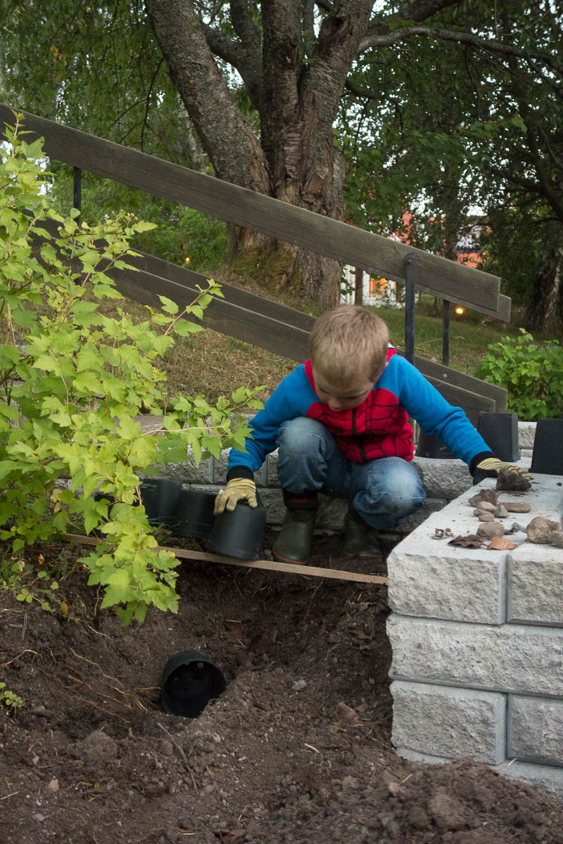 Almost every evening, Adrian is there to keep me company. Digging in this hard soil is no fun for him, so instead he just plays nearby. Currently he is building a small army from some plastic flowerpots. Each size is a different creature, strongly inspired by Kingdom Rush. There are goblins, and orcs, and some other thing… it may have been trolls; I forget the details. Some monster or other, in any case.