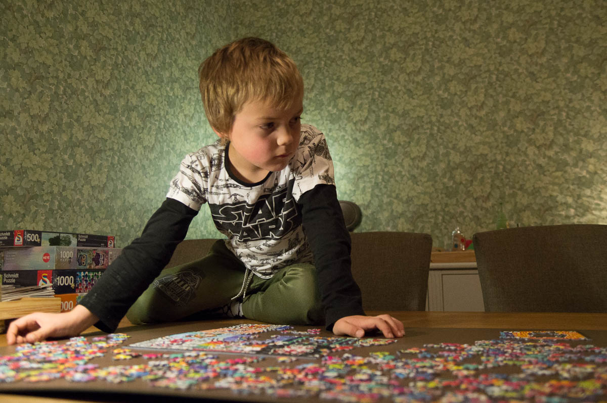 We bought some jigsaw puzzles. Adrian’s favourite was the most garishly coloured one. He claims they’re teddy bears.