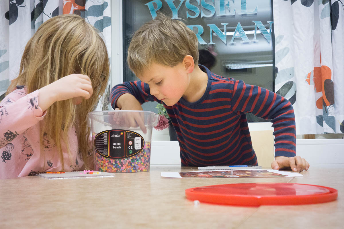 The buckets of beads at school are mostly full of happy colours that kids are expected to like – pink, yellow, light green – and there is a permanent shortage of black, white, gray, brown etc. I actually went shopping for beads in darker and duller colours that I could then donate to the school. The next day the table was full of beaded black monsters etc.