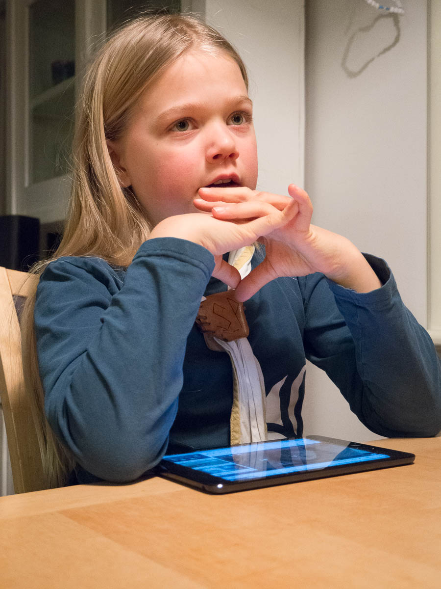 At school she enjoys the practical subjects much more than the theoretical ones. Crafts, sports, art, music… the one more academic subject she enjoys is programming, which she does as an elective class.