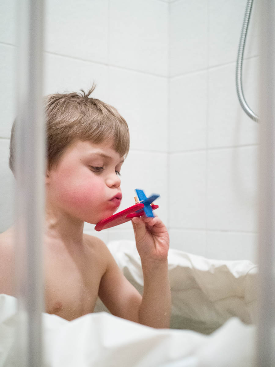 Bath. Boy. Boat.