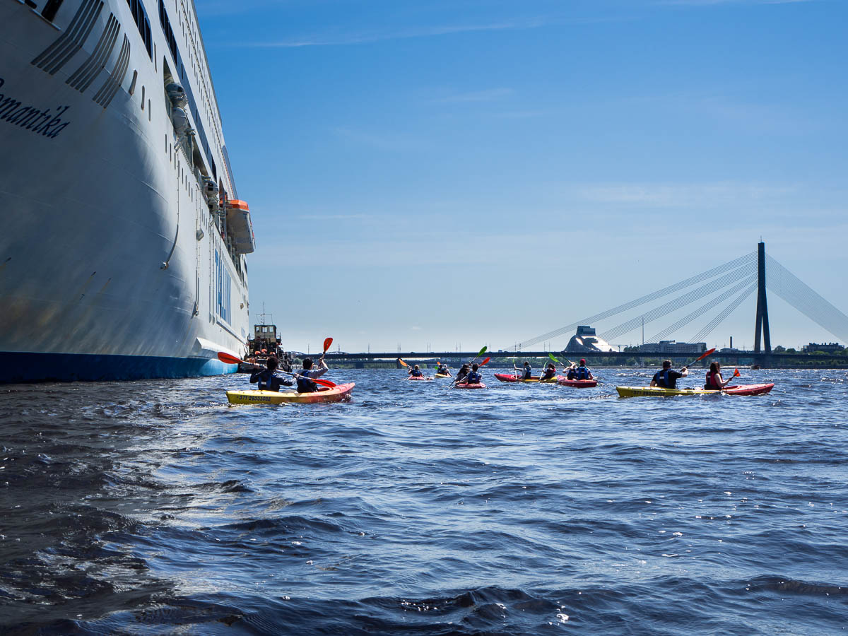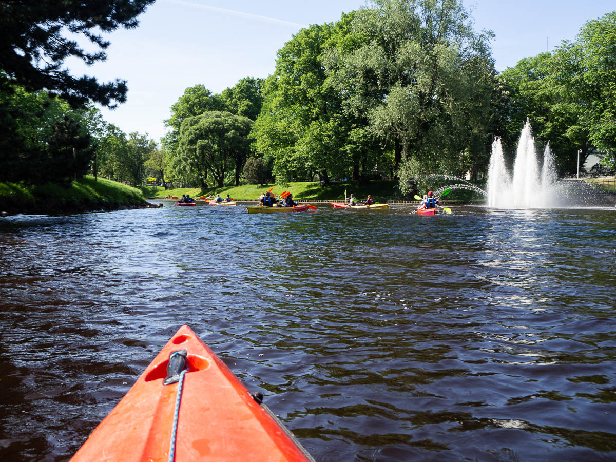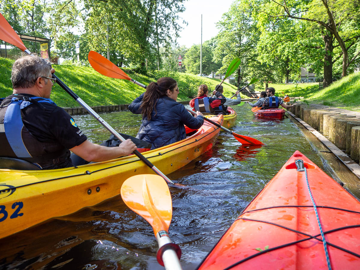 We started out in the Daugava river itself, among waves and big boats. This part was quite challenging, especially when it came to steering – the waves and wind and the flowing river seemed to always be conspiring to push us off course. The canal by comparison was placid and easy.