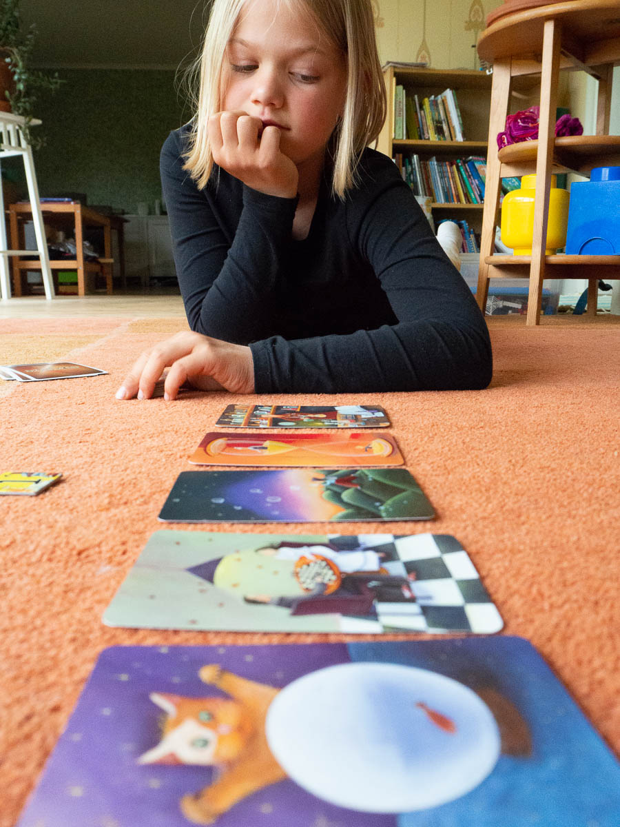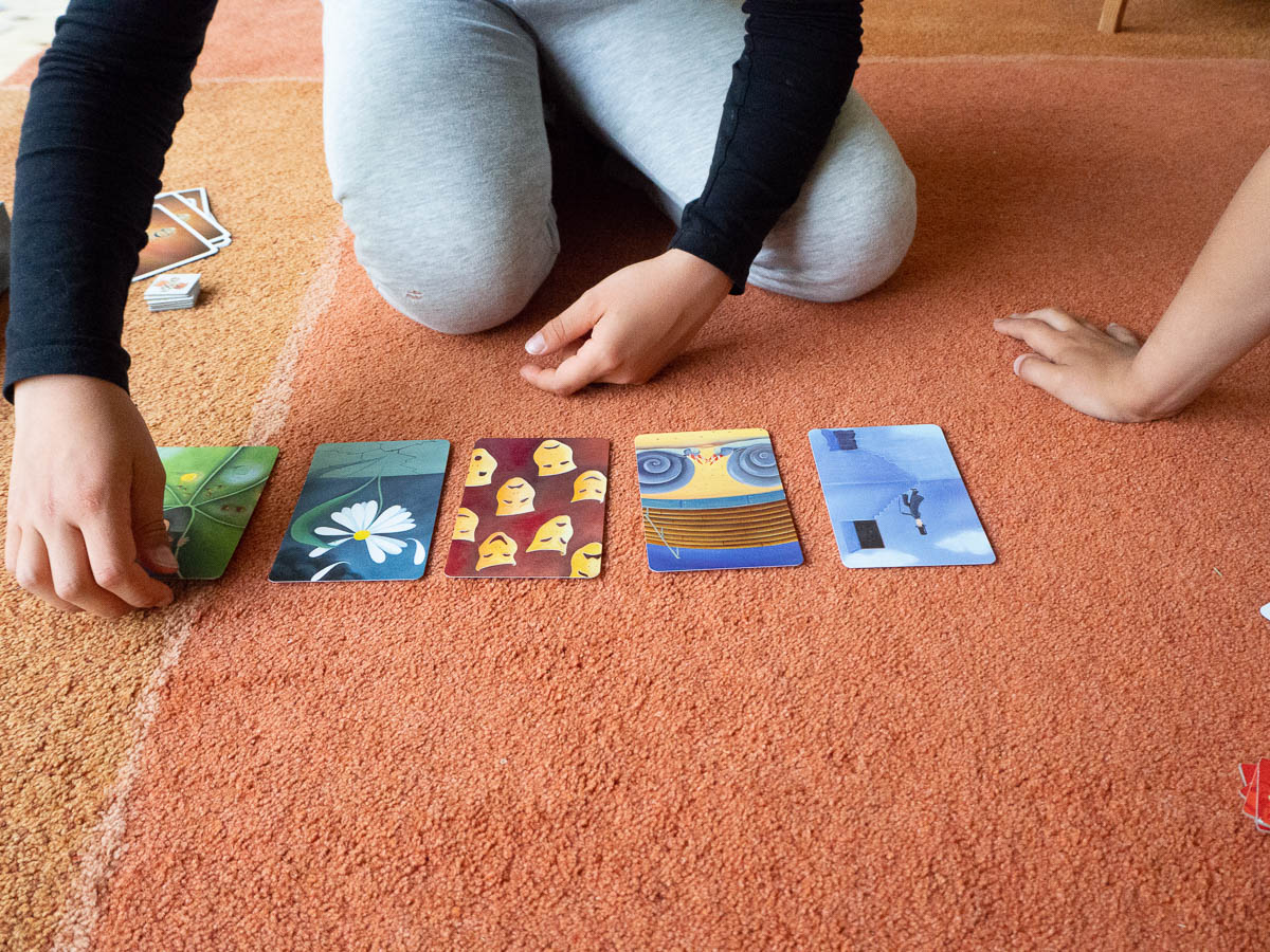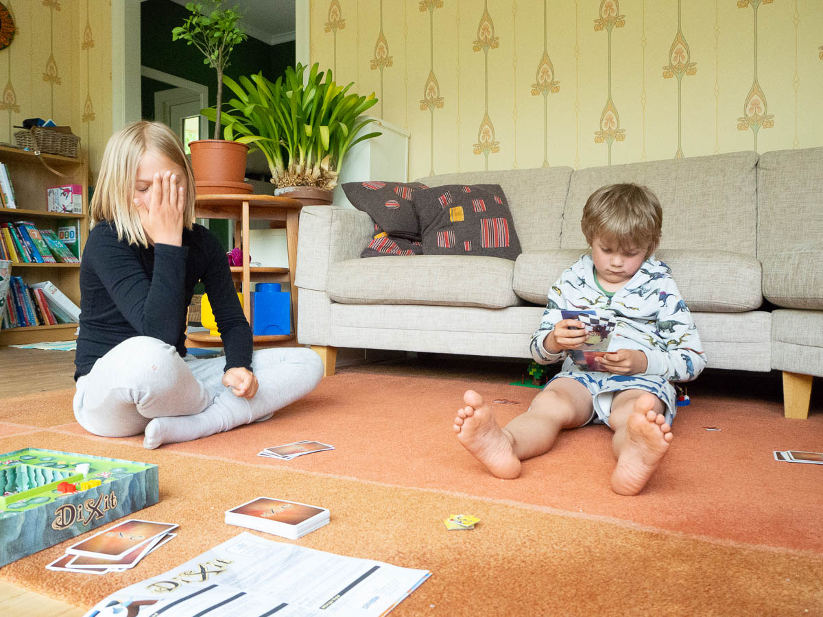 We played Dixit. The kids were tired and distracted. Emotions ranged from boredom to mild hyperactivity.