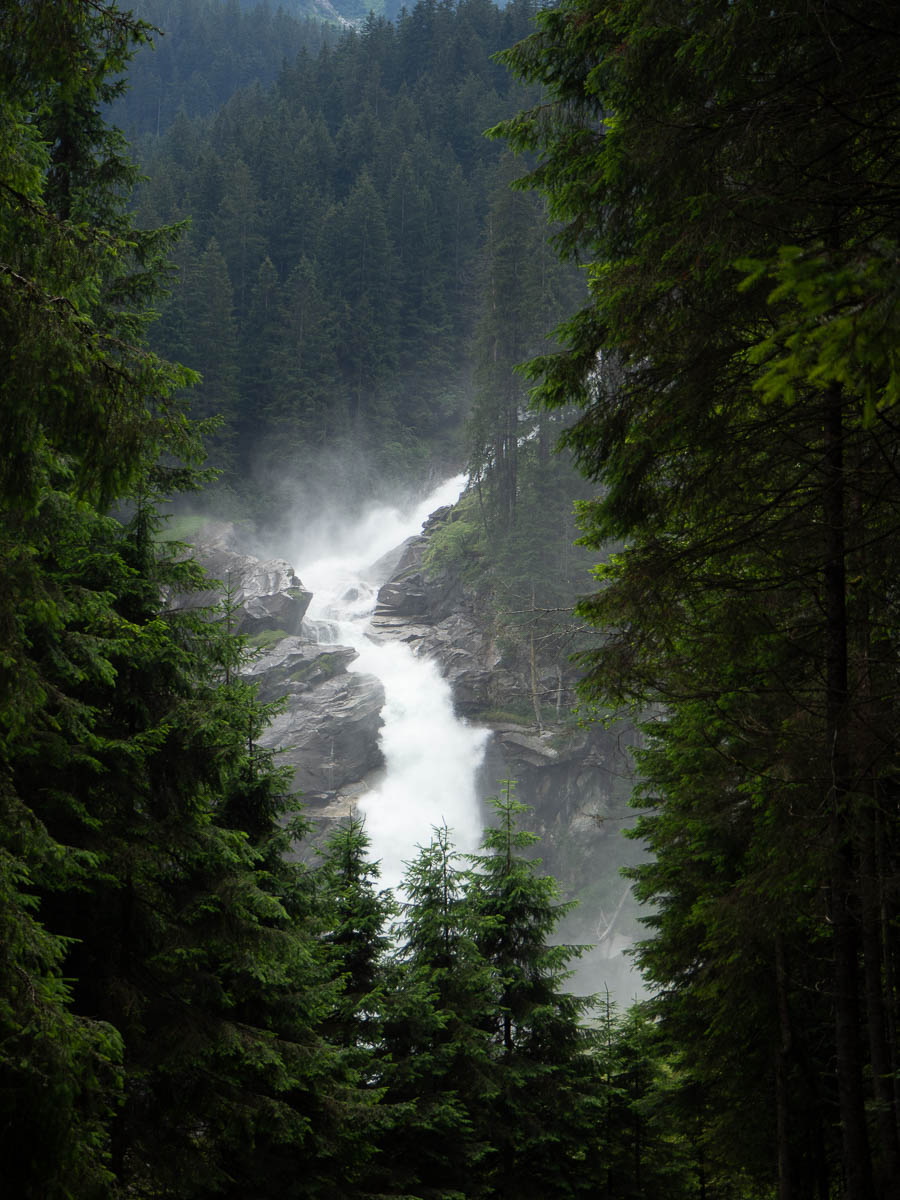 The Krimml waterfalls lie well outside the Zillertal valley covered by our maps, and we probably wouldn’t have found out about them if it hadn’t been for a couple of friendly hikers that we struck up a conversation with during an earlier walk. Now I realize that they’re one of the top 10 sights in Austria and marketed as the largest in Europe (according to some unclear measure).