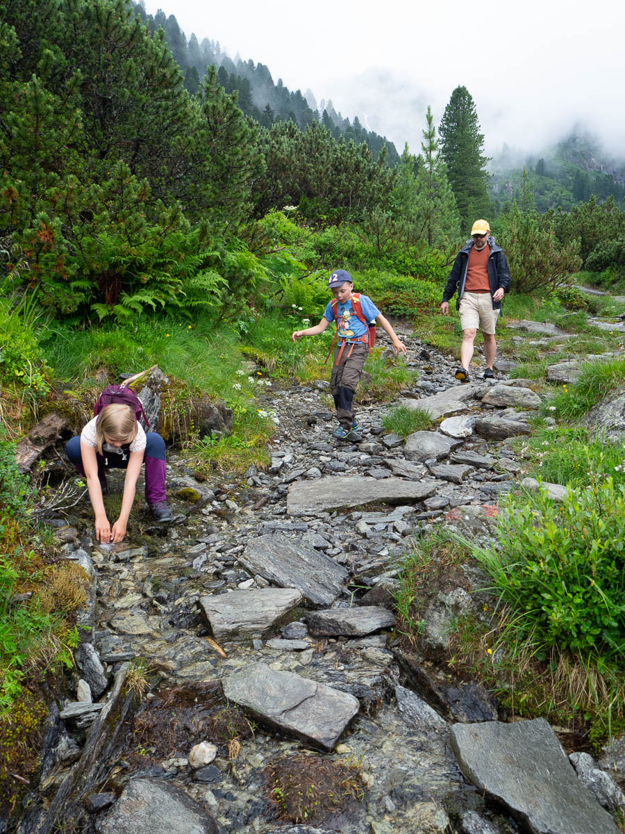 Gondolas took us partway down, and all of a sudden we were back in summer. Then we walked the last bit down, from Sommerbergalm to Hintertux village.