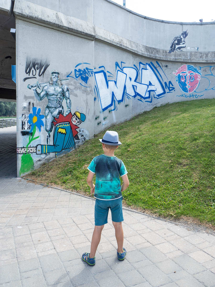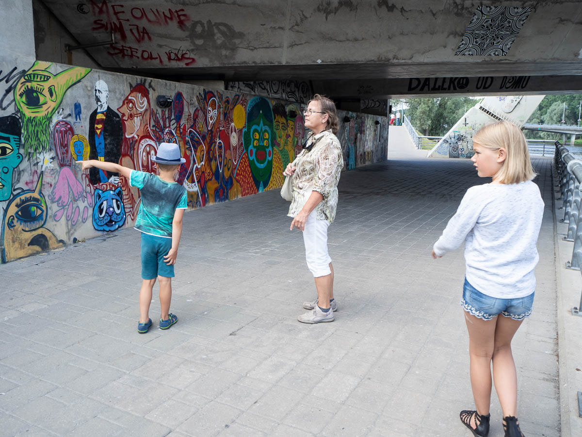 Our cruise passed several cool works of graffiti. Tartu’s politicians obviously don’t share Stockholm city council’s view that all graffiti is vandalism. After the cruise we went for an improvised graffiti walk upriver from the boat harbour to see more.