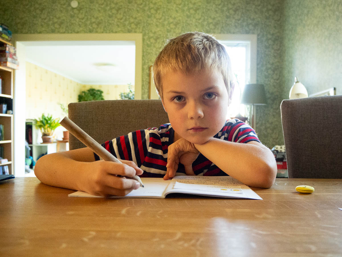Adrian’s homework each week is to read a chapter in their book, and answer a few questions in writing. The reading goes quickly and easily; the writing takes time.