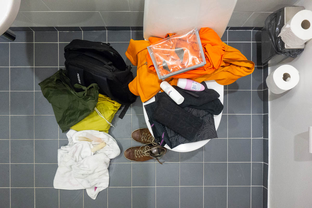 The showers and changing rooms at work are always clean and tidy. Which is a very good thing, because there are no shelves or benches in there, and I always end up piling at least some of my stuff on the floor.
