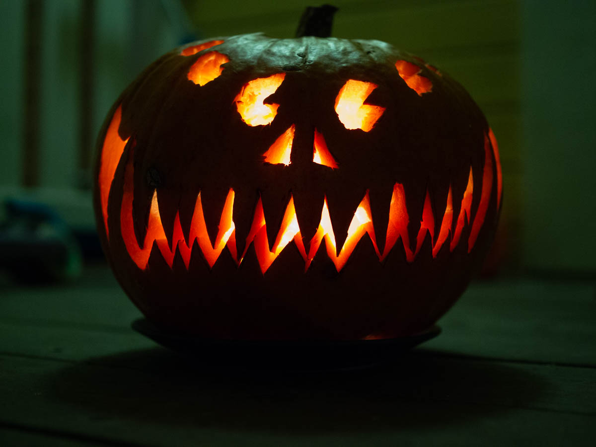 Six pacman-shaped spider eyes and a multitude of viciously sharp teeth.