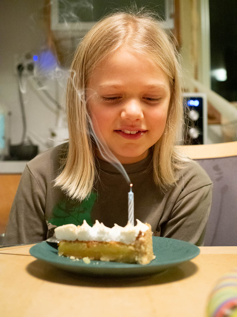 Ingrid had a mini birthday party with her best friends. Pizza, board games and a movie. And cake and a candle.