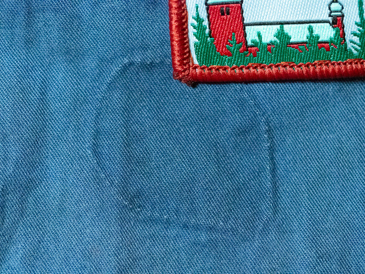 He’s inherited Ingrid’s scout shirt but the badges are his own. The shirt is like a palimpsest.