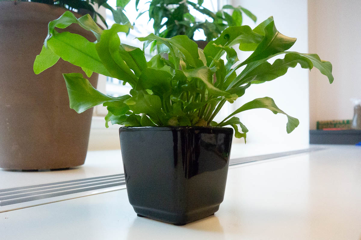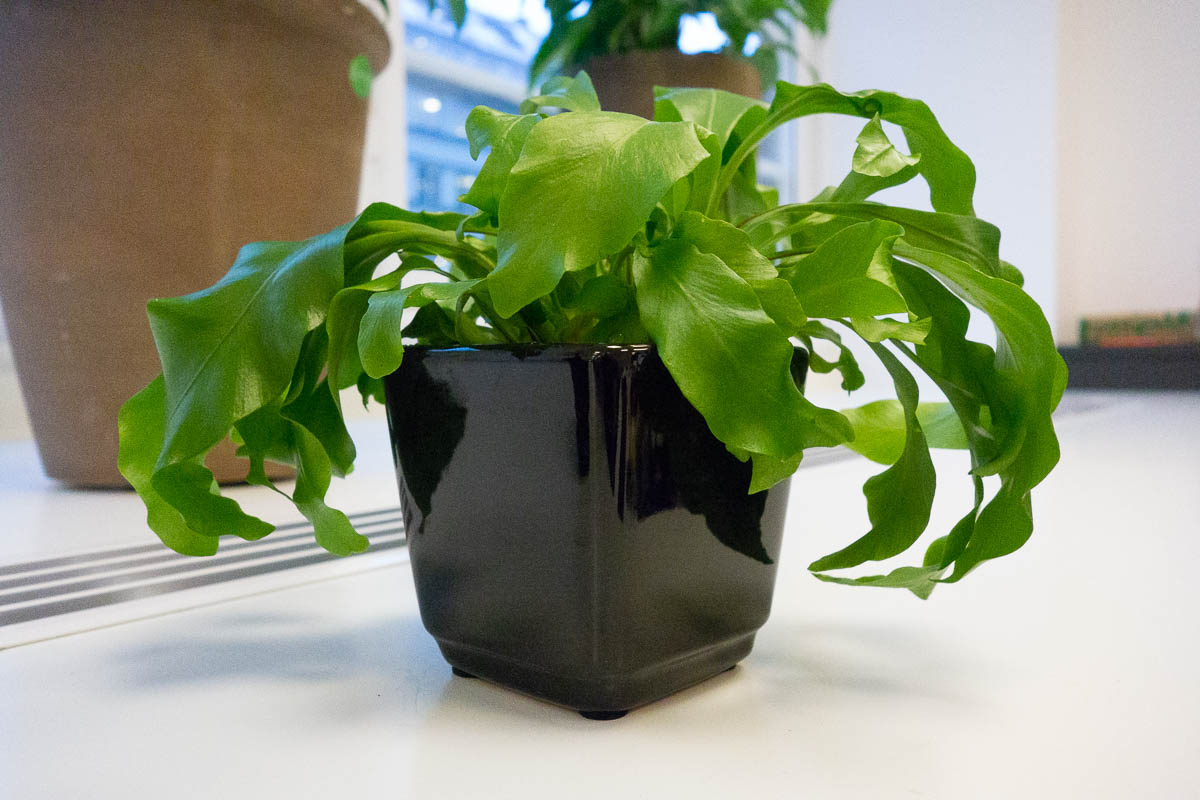 I have two small potted plants next to my desk at work. One is a jade plant that would probably survive an entire summer break without me. The other is some kind of glossy-leaved fern that definitely wouldn’t. I normally water both on Mondays; this week I was at home both Monday and Tuesday and the poor fern was looking pretty sad this morning. But a few hours after watering it was back to its normal perky shape.