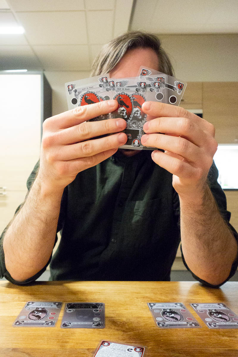 The occasional hangarounds on the other hand are mostly there for the social aspect of things, and for them the game is just the thing that brings us together. Which is a perfectly valid approach to board games – but it requires a different choice of games. We can’t spend 15 minutes going through the rules because their eyes will glaze over. And we can’t spend two or three hours on a single game. So I’m always on the lookout for games that aren’t pure party games but that are easy to get into, and are suitable for a larger group of players with mixed experience levels. (So many games are for two to four players only.)