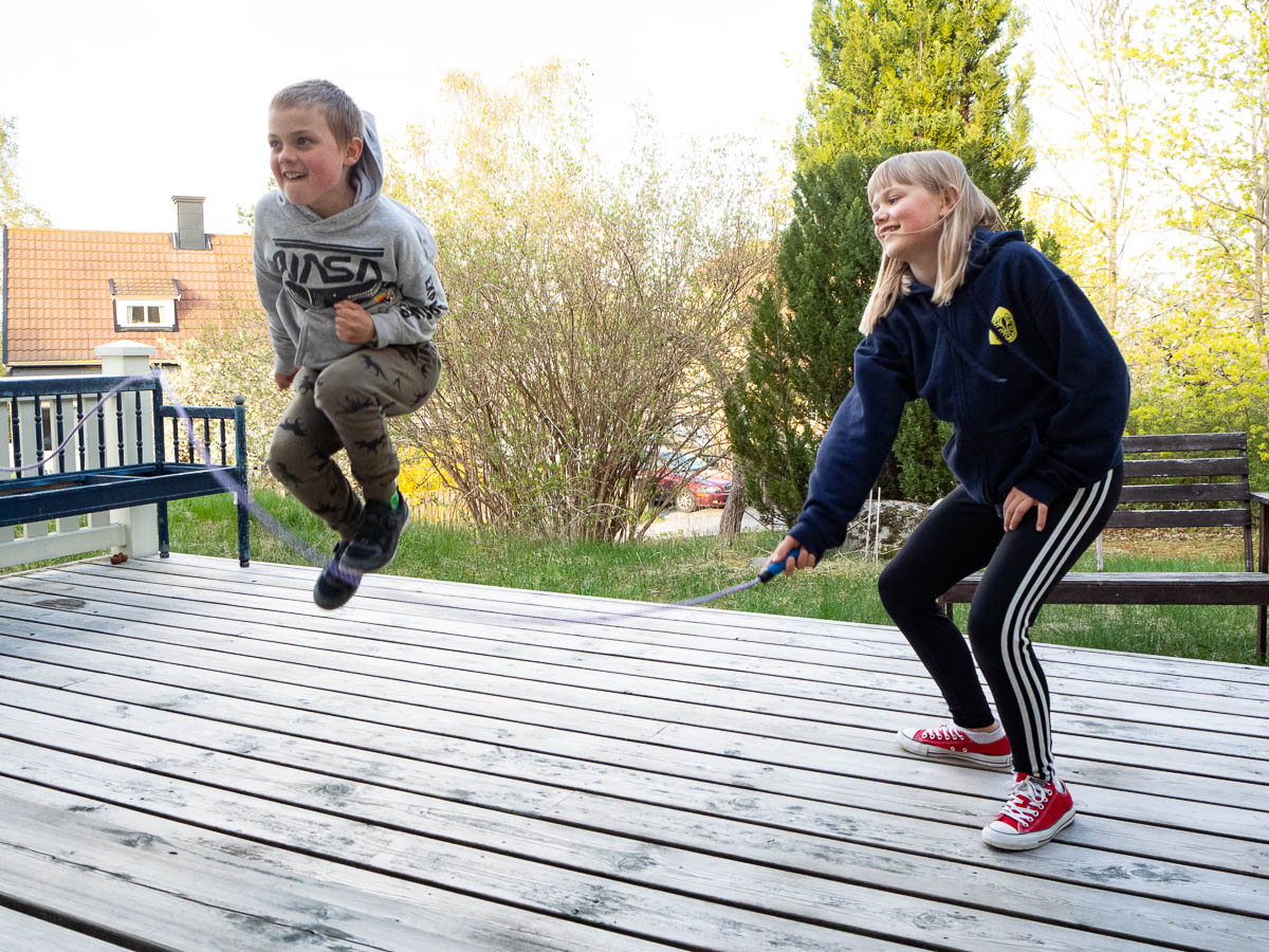Ingrid is giving Adrian a master class in skipping rope technique.