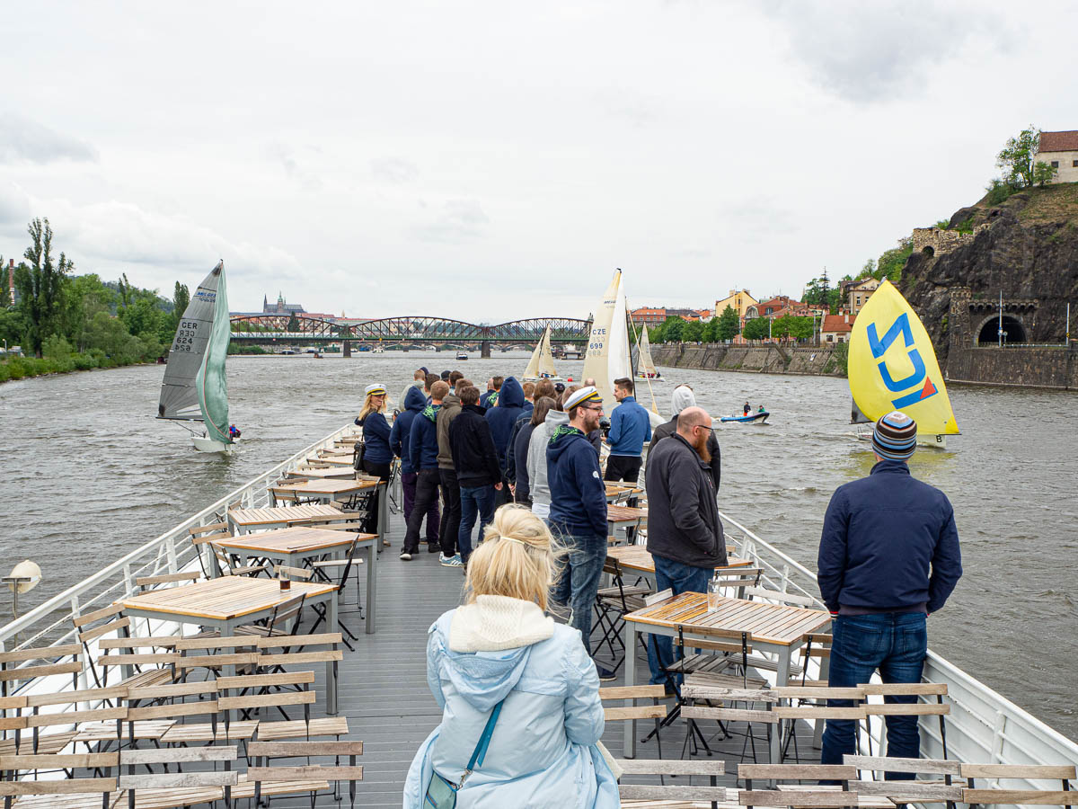 The boat trip was not particularly exciting. There was no guide to tell us anything about what we saw. And the Vltava is so wide that you don’t really get a very good view of the city this way. The clear highlight of the cruise was a yachting event that we passed. Half a dozen little yachts were going up and down the river between colourful buoys. The wind was brisk to say the least, and they were going at great speed, very close to each other. There were several near crashes and we saw one sailor go overboard. Compared to this, the rest of the trip was bland.