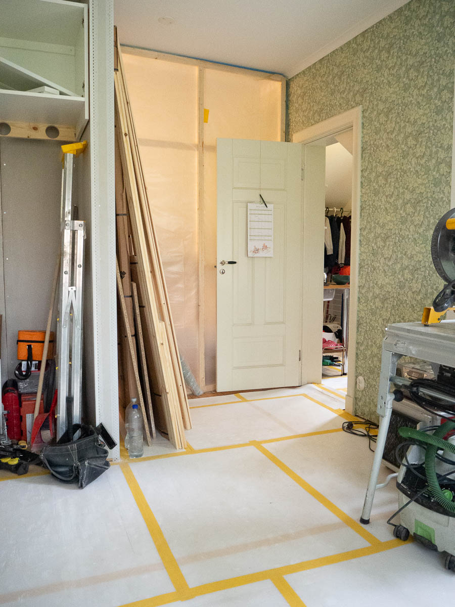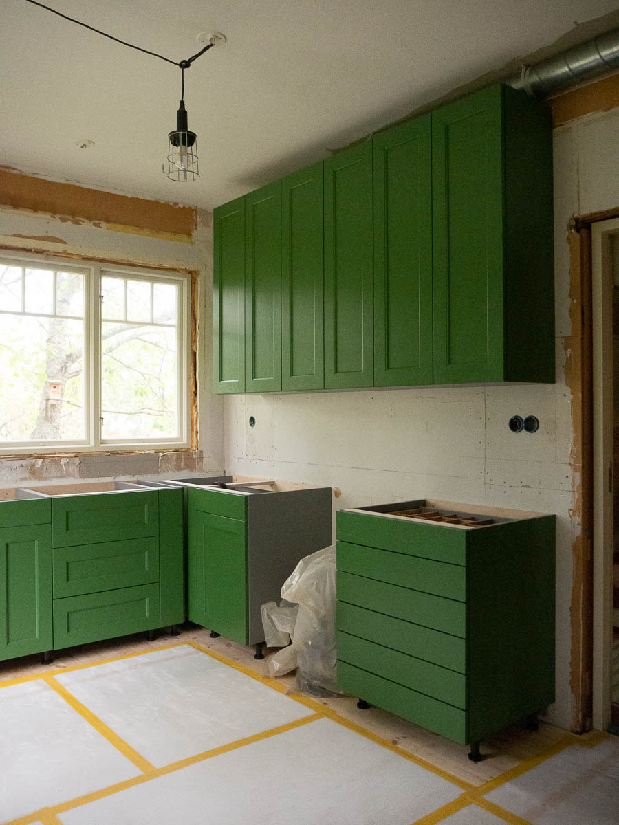 More cabinets have appeared. Turn around, though, and the other side of the kitchen still mostly looks like a construction site and doesn’t really have much of a kitchen vibe yet.