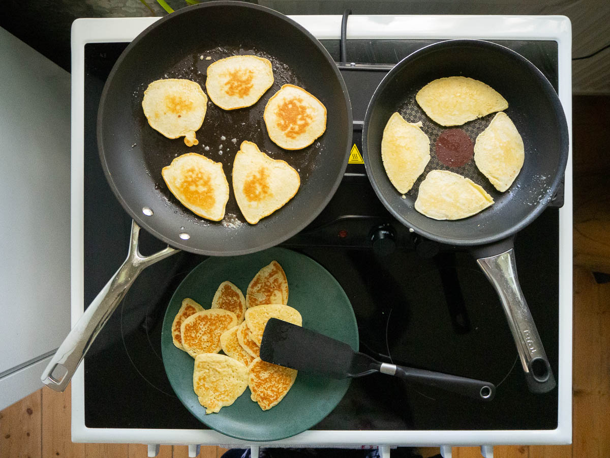 This hob is hopeless. The left-hand burner is slow but more or less works; the right-hand one can barely keep water boiling. I tried to make pancakes today and they just never got done on the right-hand burner. The batter turned solid after a while but didn’t get any colour so it was more like drying than frying the batter.