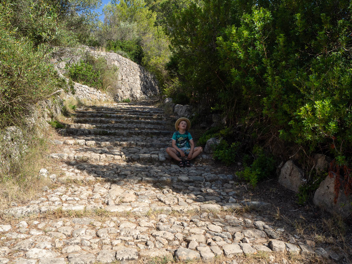 Indeed the initial ascent wasn’t much fun. But as soon as we got a bit higher up into the hills, into areas that were open towards the sea, we got a cooling breeze and everyone perked up. The heat is most insufferable when the air doesn’t move and sweat doesn’t evaporate. (This was the first time ever in my life, outside of saunas, when I literally had trickles of sweat running down my body.) Just having some movement in the air, even though that air was no cooler, made a huge difference. After the frying pan feeling of the valley around Sóller, this was quite refreshing. Indeed I thought that if all the days could have felt like this, we could have done a lot more walking this week, even with this heat wave.