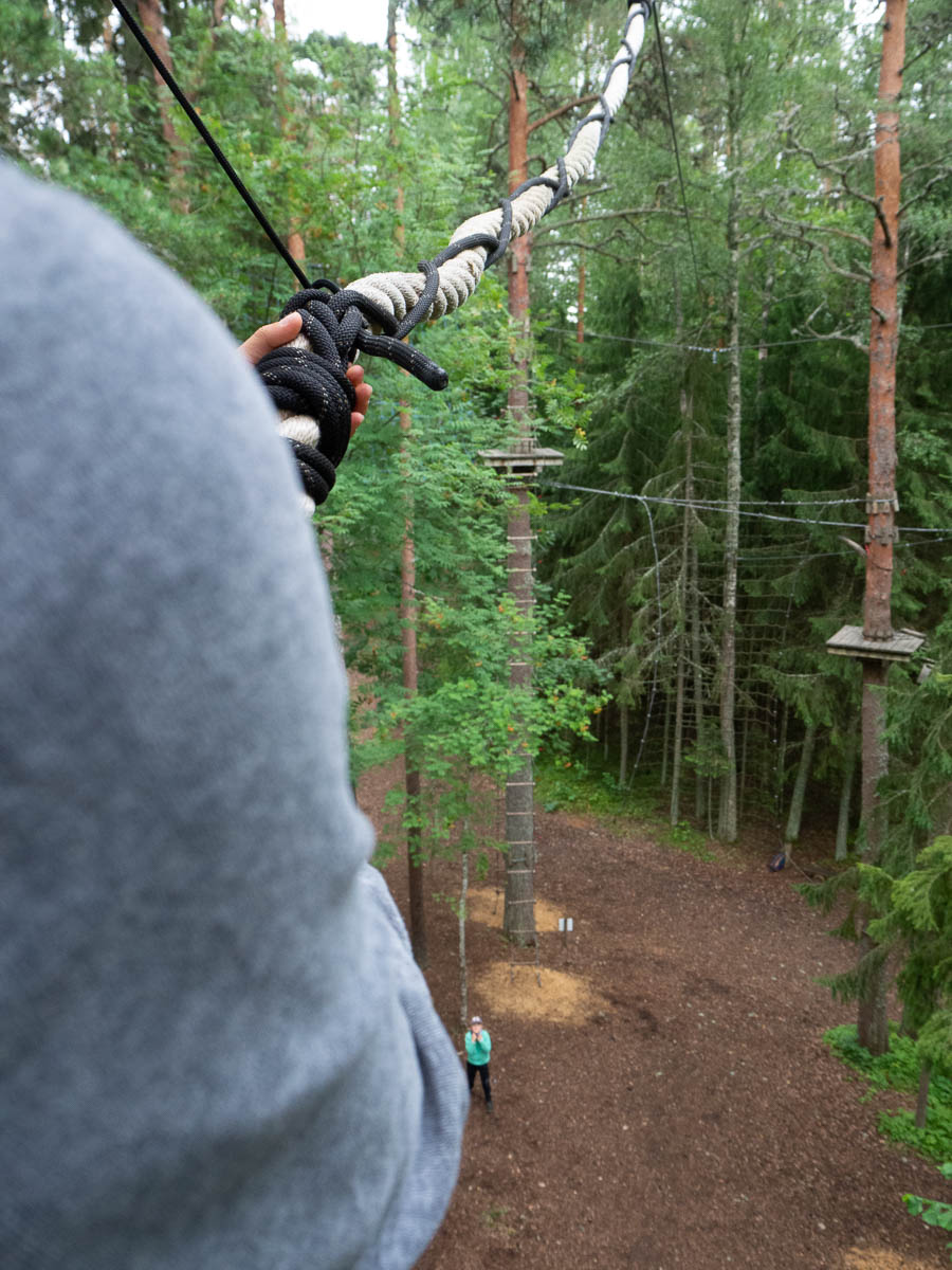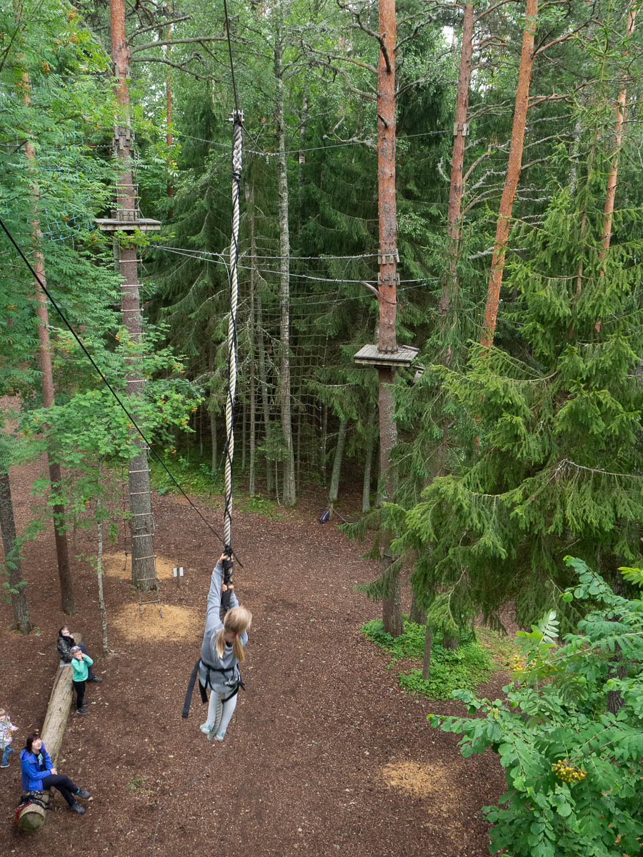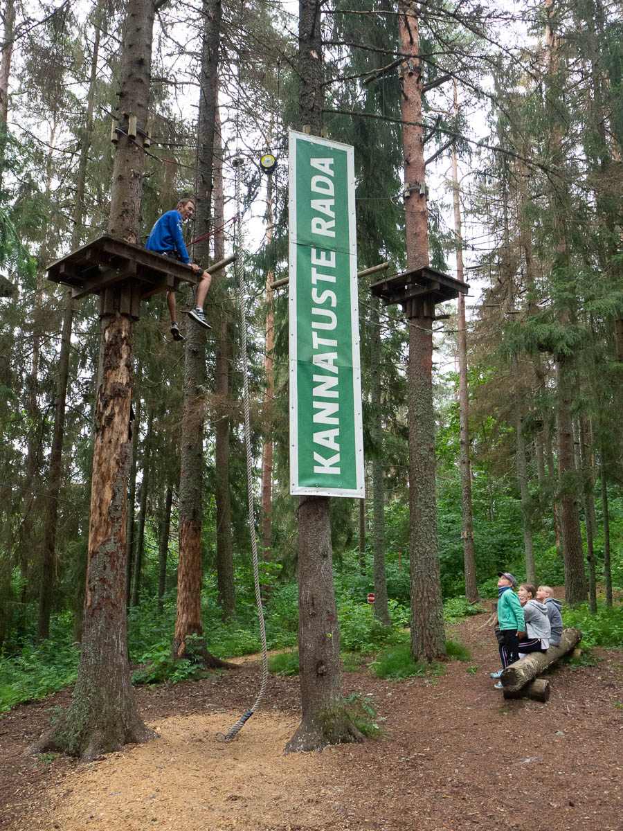 Our annual visit to Otepää adventure park with a bunch of friends and kids. Ingrid on all five trails; Adrian on three; all three of us on the ziplines.
