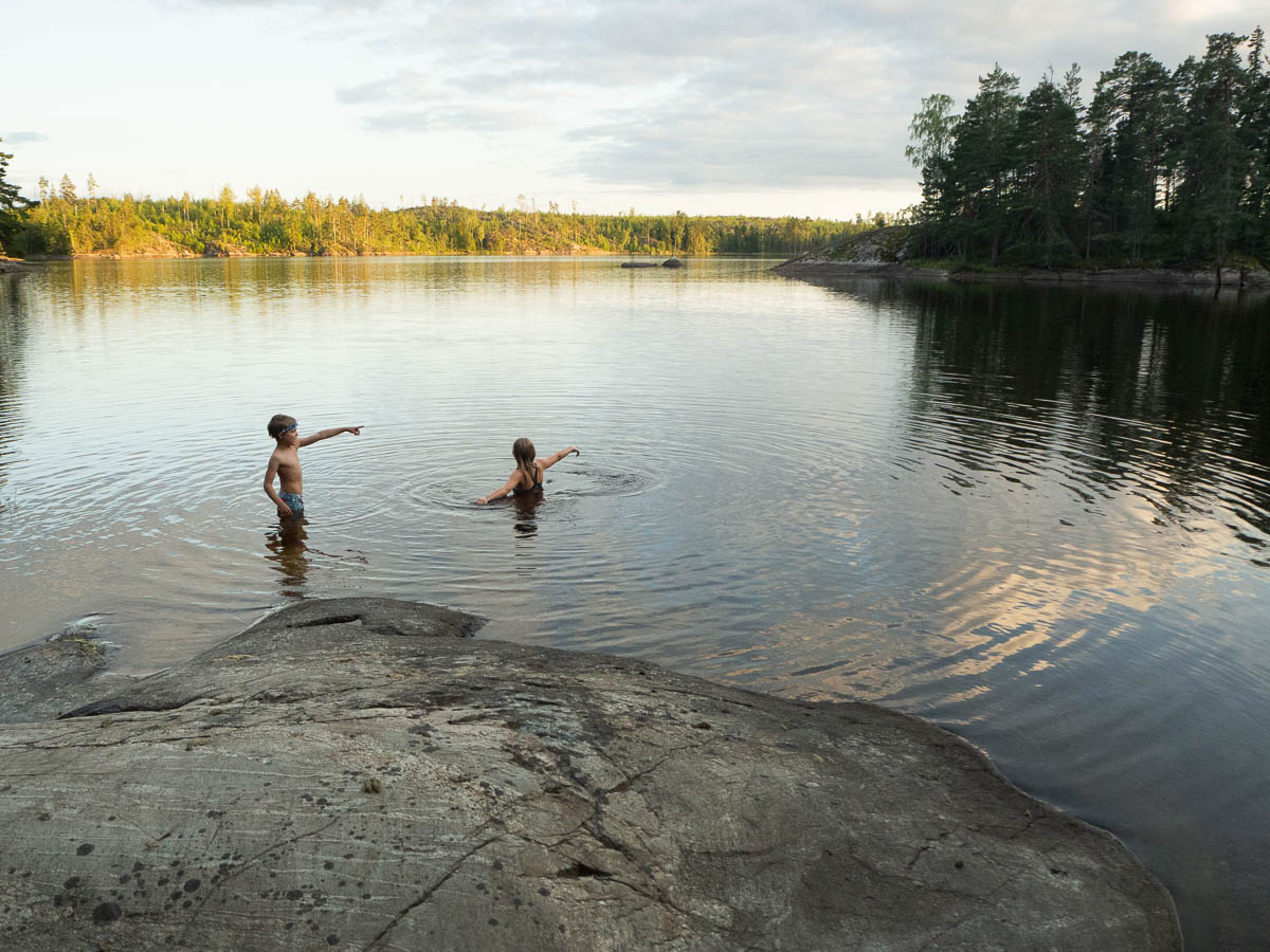 Adrian went to sleep in the tent, while Ingrid and I went for a late night swim. There was a small island quite close to the shore – too far for the children to swim to on their own, but close enough for me and Ingrid. The weather was quite chilly so we didn’t stay on the island for more than just a moment. During our swim back, we had company of a bat that swooped by very close to us, just above the water.
