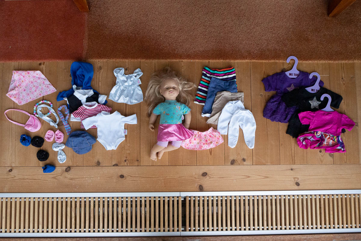 Photographing Ingrid’s old doll for selling it.