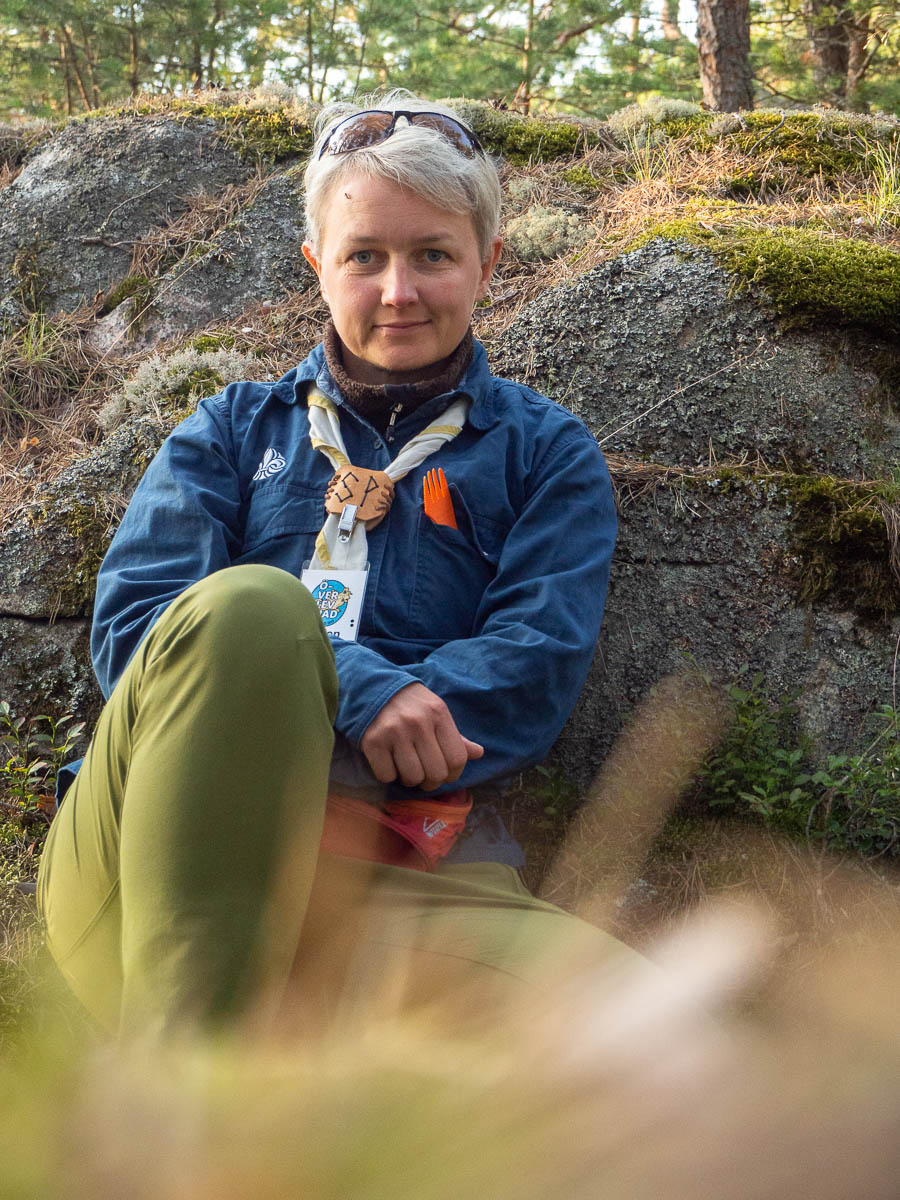 In the evening I walked away from the camp again to get a self-portrait. Here I am, complete with puffy face (I get that when I’m outdoors and I don’t know why), a scout shirt, a spork in my breast pocket, and a mosquito on my temple.