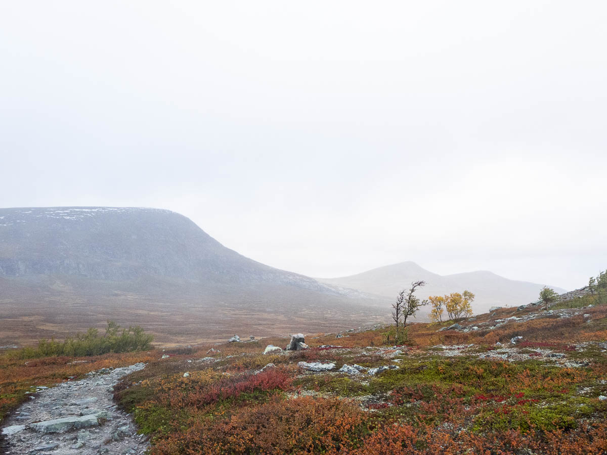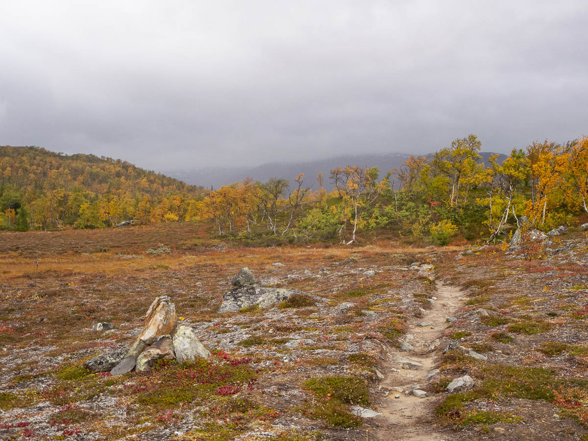 The first half of this walk crosses the same empty plateau that I’ve usually walked across during the afternoon of my first day, but in the other direction. The trail then descends to below the tree line and continues through alpine birch forest.