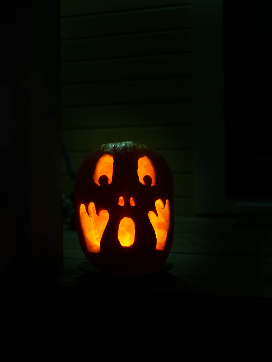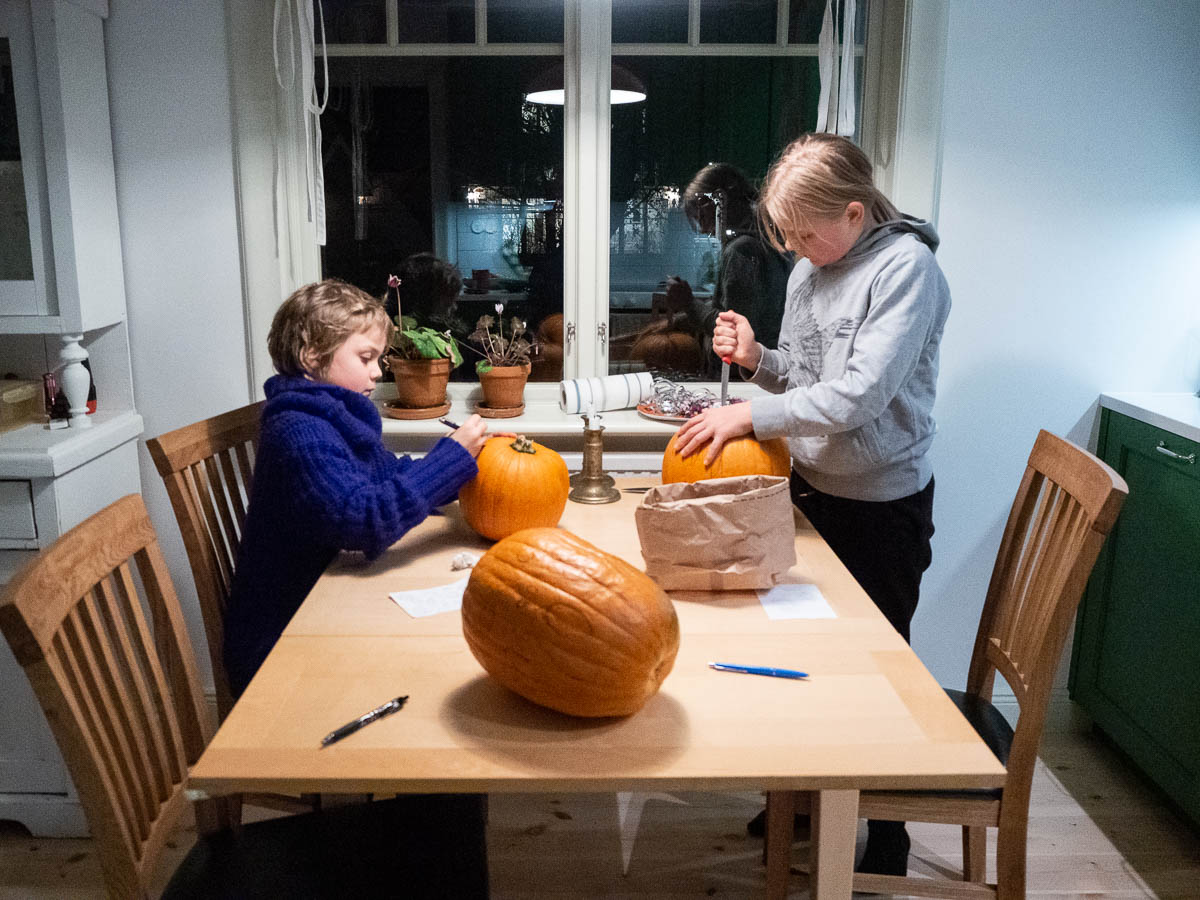It’s nearly Halloween. Today we carved pumpkins (just look at Ingrid’s stabbing!) and bought lots of candy for the trick-or-treaters we hope will come.
