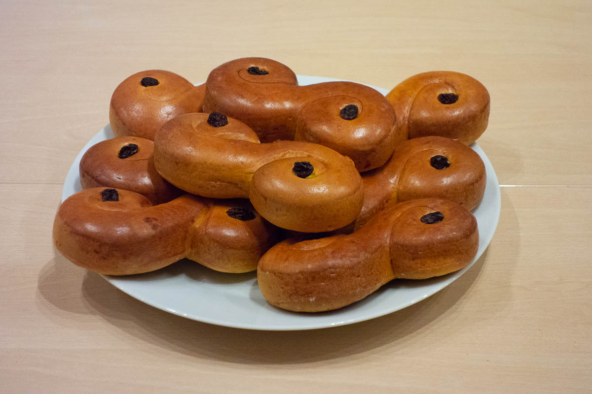 No community, organization, club, or other group in Sweden would ever arrange a meeting without fika. SpĂ„nga scout group is no exception. I’m a sort of consulting member of the scout group, acting as a mentor when it comes to planning and organizing food for larger events such as summer camps. There is a standing committee that coordinates the scout group’s events. We had a meeting today, and it was my turn to bring fika. Shop-bought lussebullar since it’s nearly December.