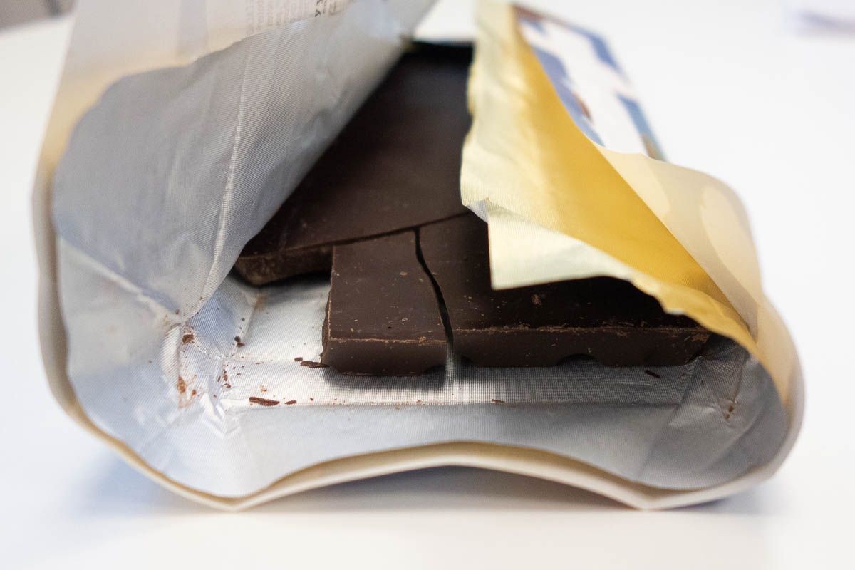 We had a “secret Santa” gift exchange at work. My secret Santa gave me some nice, dark chocolate, which I now nibble away at, a square or two at a time, after lunch.