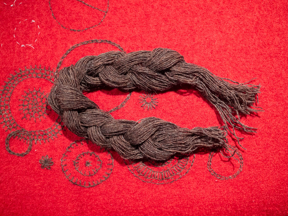 I’ve never embroidered with wool before. It feels nice, but it is also kind of challenging. Wool is scratchy, so the yarn tends to get tangled up more than I’m used to. And this yarn is surprisingly fragile. When I get a knot and try to unpick it with my fingers, I sometimes end up unpicking the yarn itself. I’ve also broken it several times just by trying to pull my stitches tight. Some stitches can be looser, but blanket stitch has to be tight or it goes all crooked.