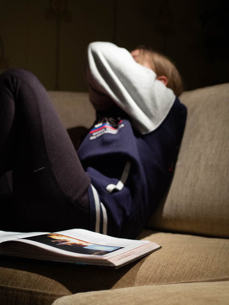 I’m helping Ingrid with her physics homework, while she coughs all the time.