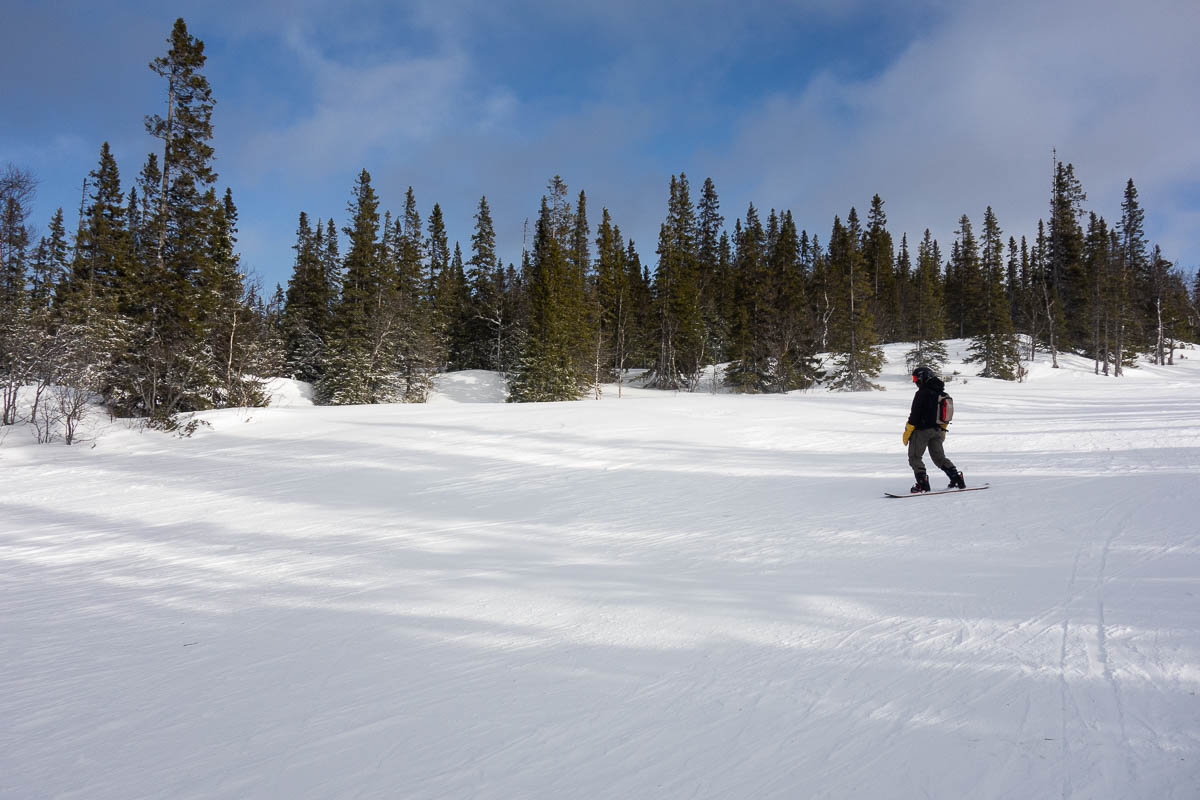The wind remained strong and unpleasant most of the day and the skies were gray and heavy. The lifts to the upper slopes were closed and we probably wouldn’t have wanted to be up there anyway. So we stayed in the lower slopes around Björnen.