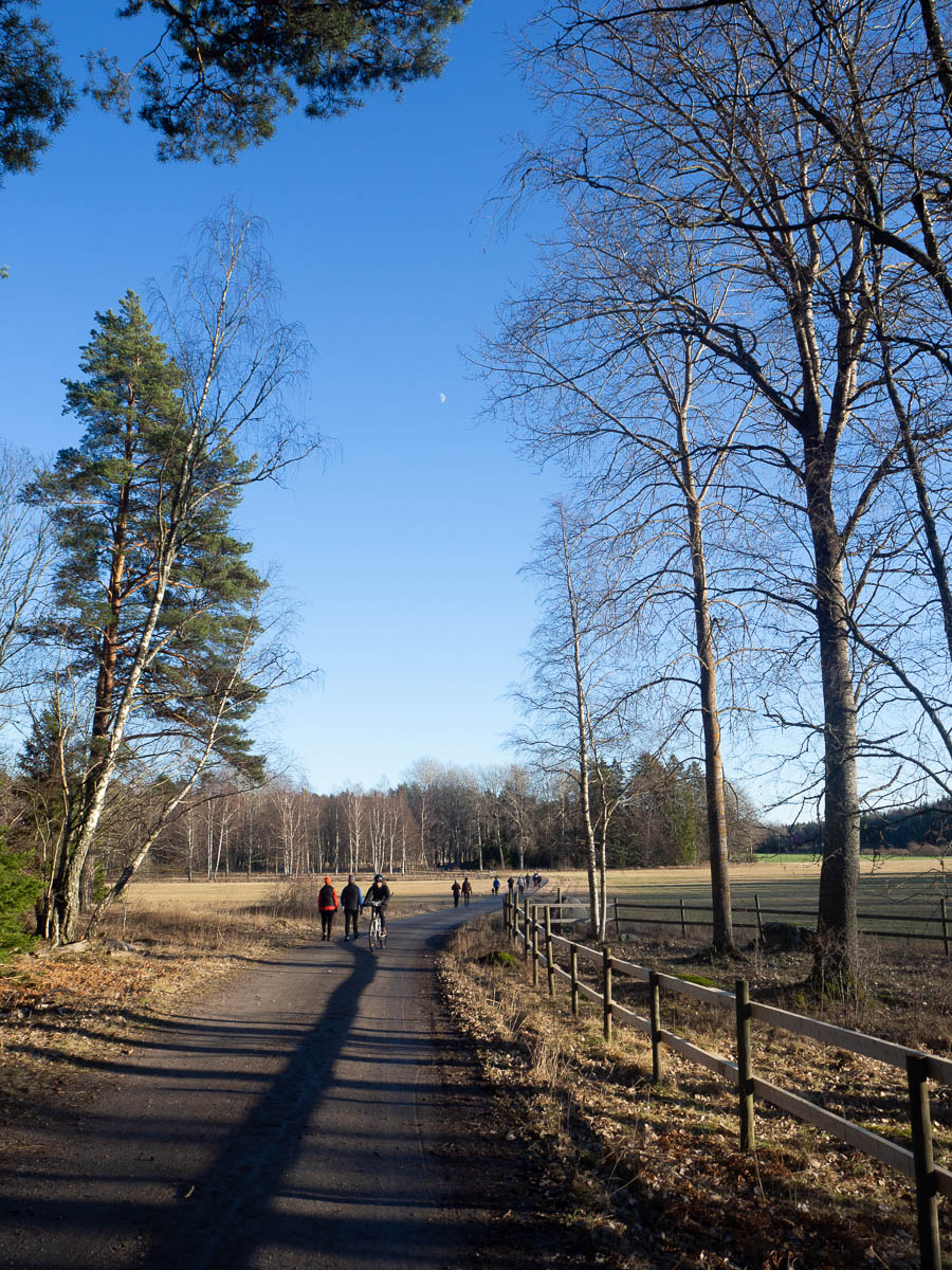 Today was another unbelievably warm and bright Sunday, so I went for a walk again. On my own this time. I took the train to Jakobsberg, walked to Säby gård, and then made a big and crooked circle around most of Järvafältet. That’s another good thing about clear skies: I can use the sun for navigation. I could simply head roughly north for a good while without having to look at any maps.