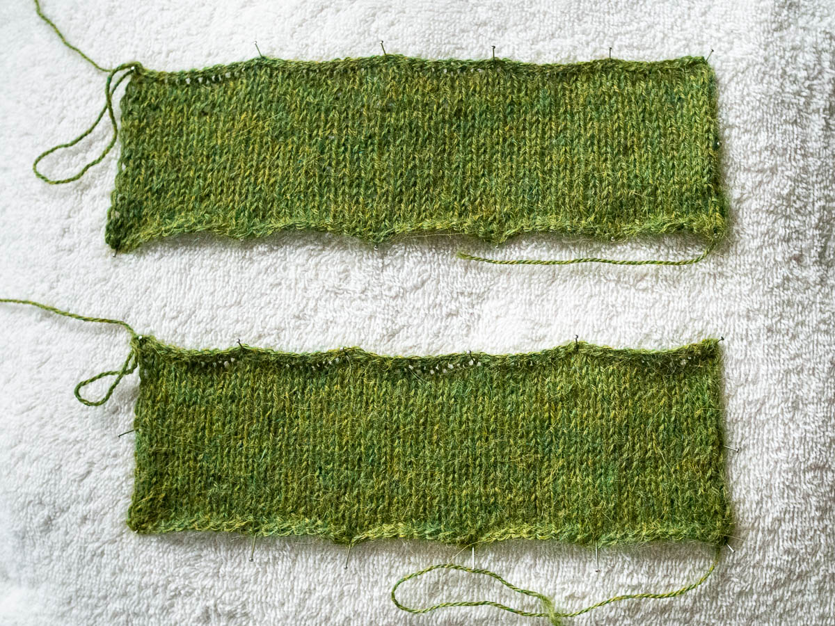 I’m preparing for a new knitting project, by knitting gauge swatches.