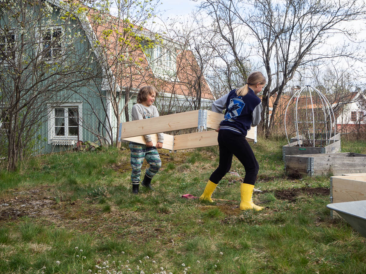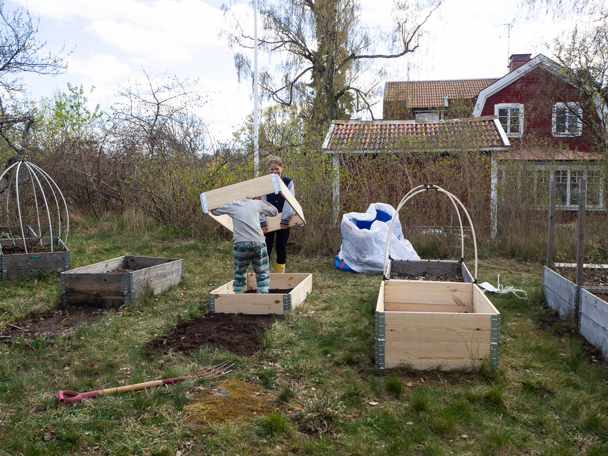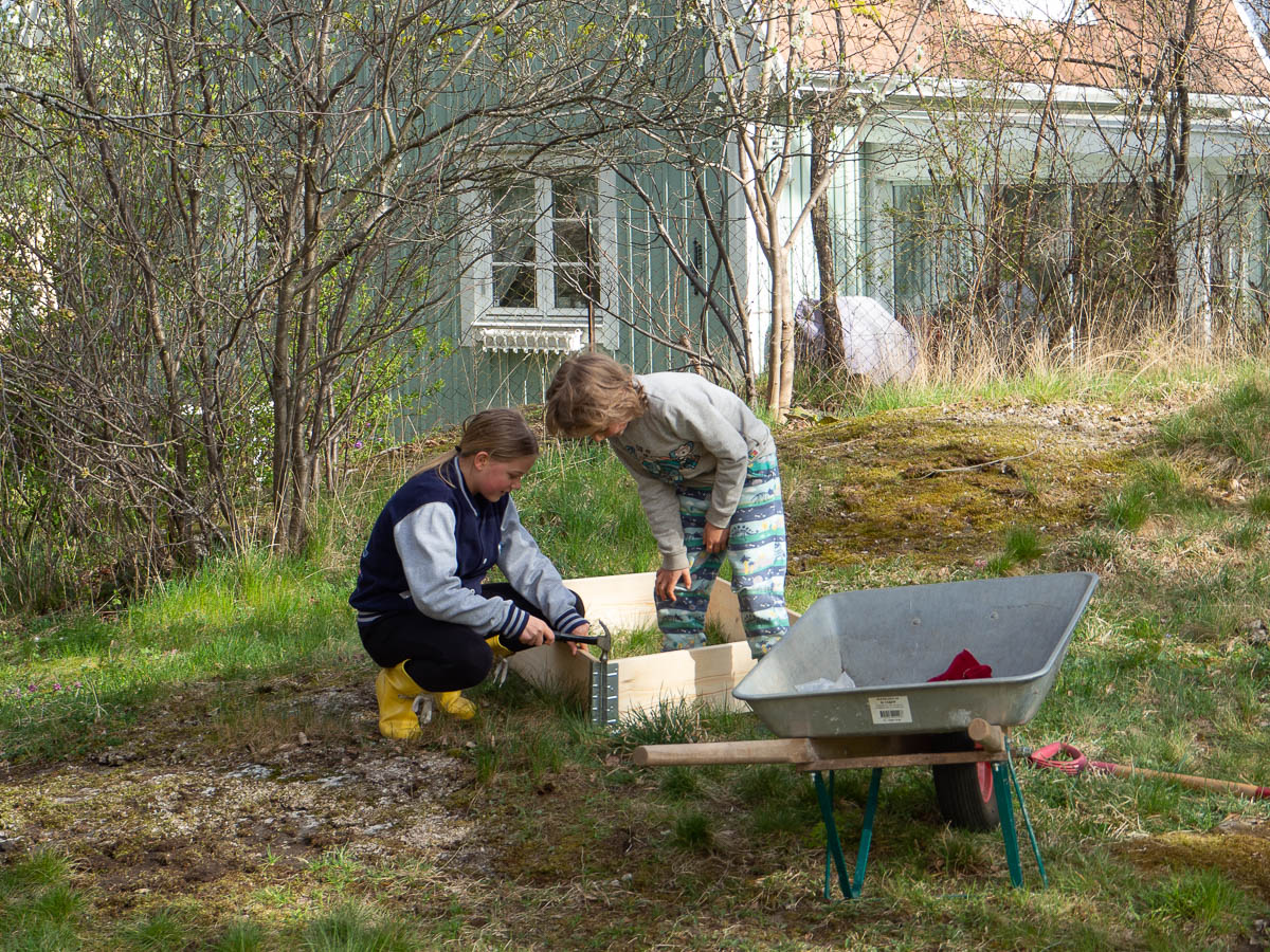 Adrian helped me assemble the boxes. Then Ingrid came out as well and they “helped” each other. There was so much monkeying around that there was almost no progress on the boxes… when they gave up and went in, it was almost a relief, and I could finally get the last boxes done on my own.