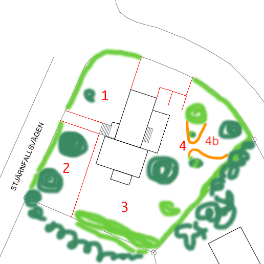 The new section 4b, beyond the passage, will then be less important since it will be less visible. There’s an apple tree there right now. Maybe I can somehow squeeze in a plum tree there somewhere? Blackcurrant bushes, maybe?